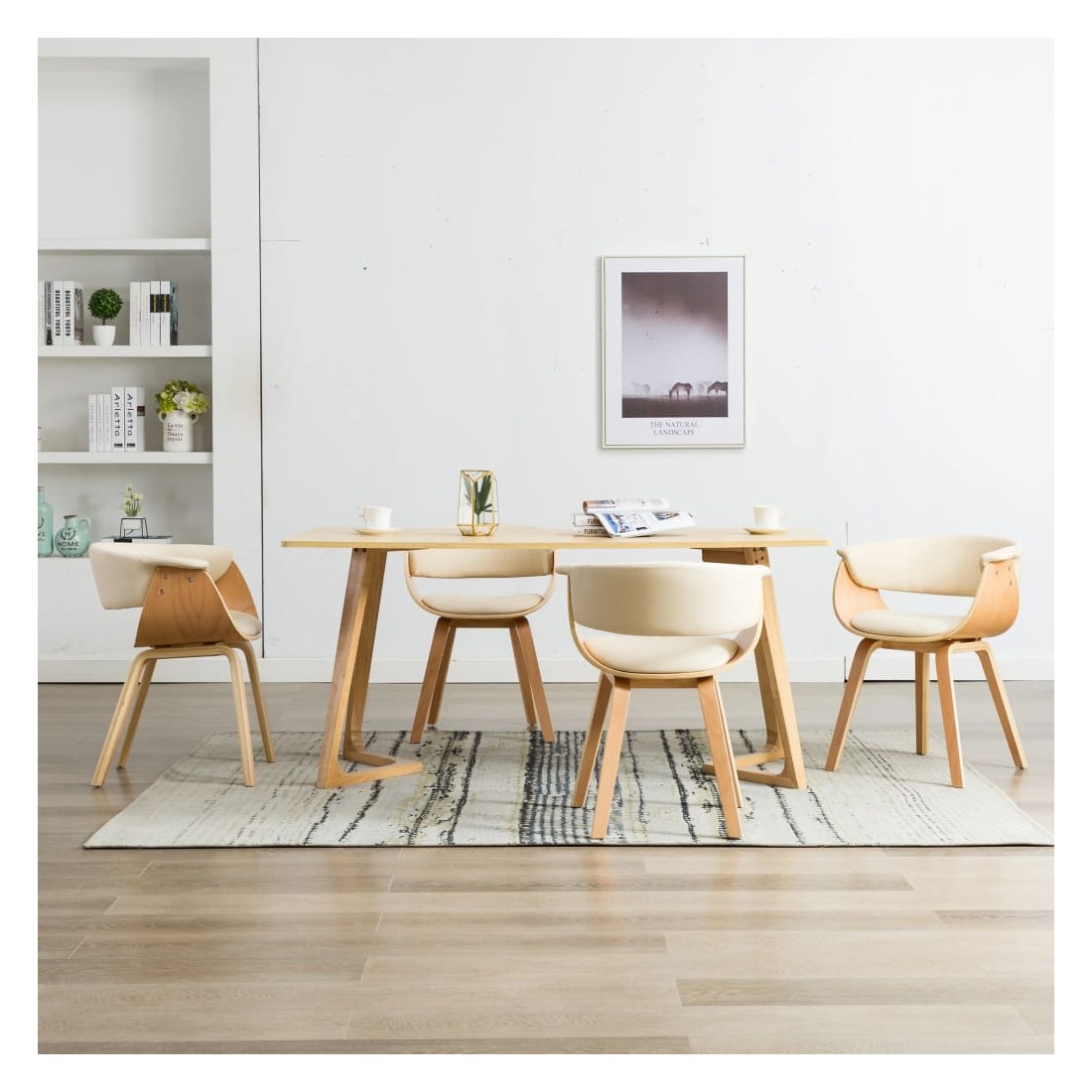Chaises à manger lot de 4 crème bois courbé et similicuir