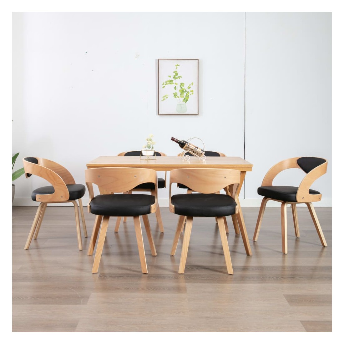 Chaises à manger lot de 6 noir bois courbé et similicuir