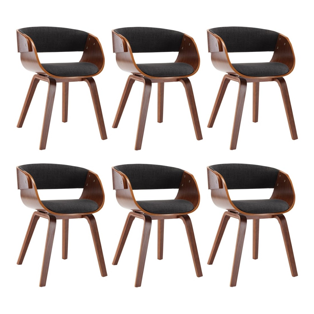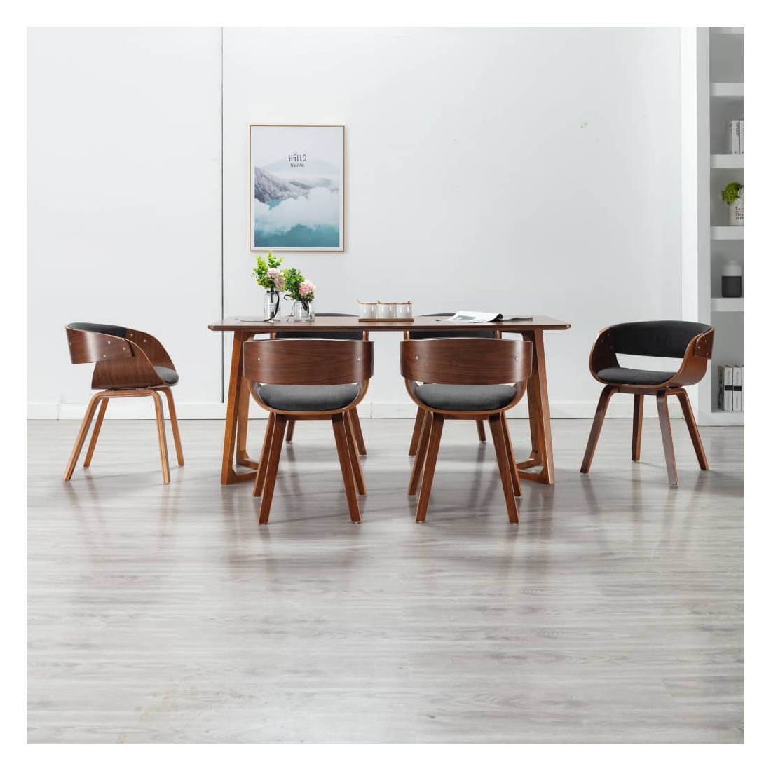 Chaises à manger lot de 6 gris bois courbé et tissu