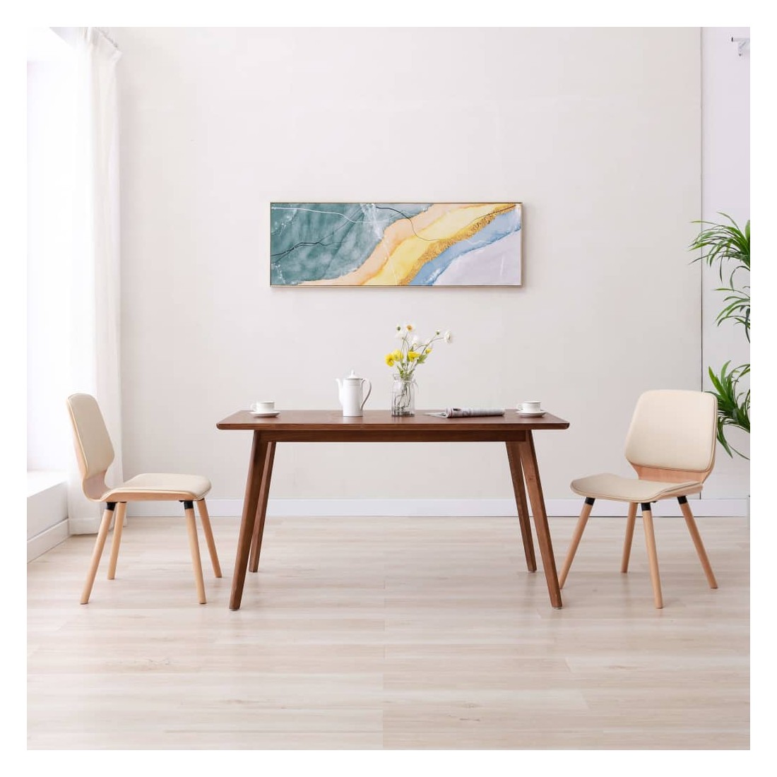 Cet ensemble se compose de 2 chaises à manger élégantes, est destiné à être le point de mire de n'importe quelle pièce. Chaque chaise est tapissée de similicuir bien rembourré et facilement nettoyable pour un confort optimal. Le cadre en bois robuste a un design élégant et contemporain qui ajoute à son style unique. Les 4 pieds en bois sont forts et stables. La conception ergonomique de l'assise et du dossier ajoute au niveau de confort des chaises. Ces chaises de salle à manger sont également faciles à assembler.