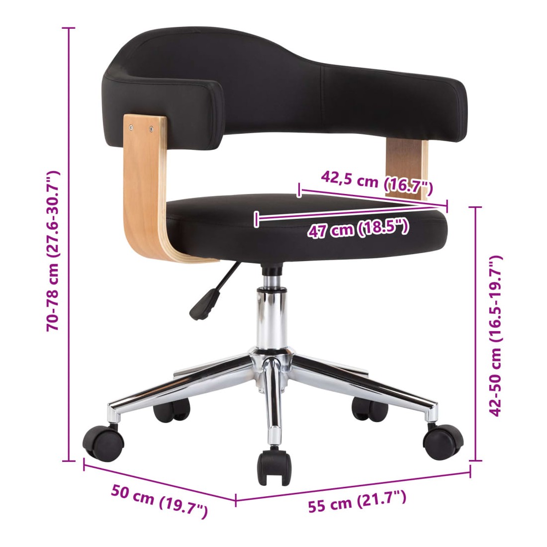 - Dimensions totales : 55 x 50 x (70-78) cm (l x P x H)