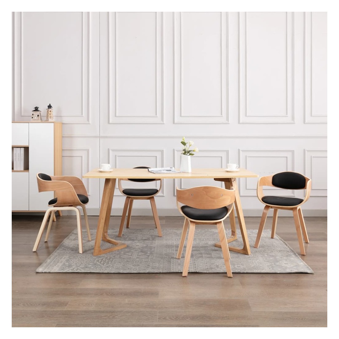 Cet ensemble de 4 chaises de salle à manger, au design soigné et simple, est conçu pour vous apporter du confort d'assise. Cette chaise de salle à manger, recouverte de similicuir, est bien rembourrée pour offrir un confort optimal. Le cadre en bois courbé robuste ajoute une beauté et un style uniques. Le design ergonomique rend la chaise de salle à manger très confortable pour vous asseoir pendant des heures. C'est un choix parfait pour manger, discuter, lire, regarder la télévision ou simplement vous détendre.
