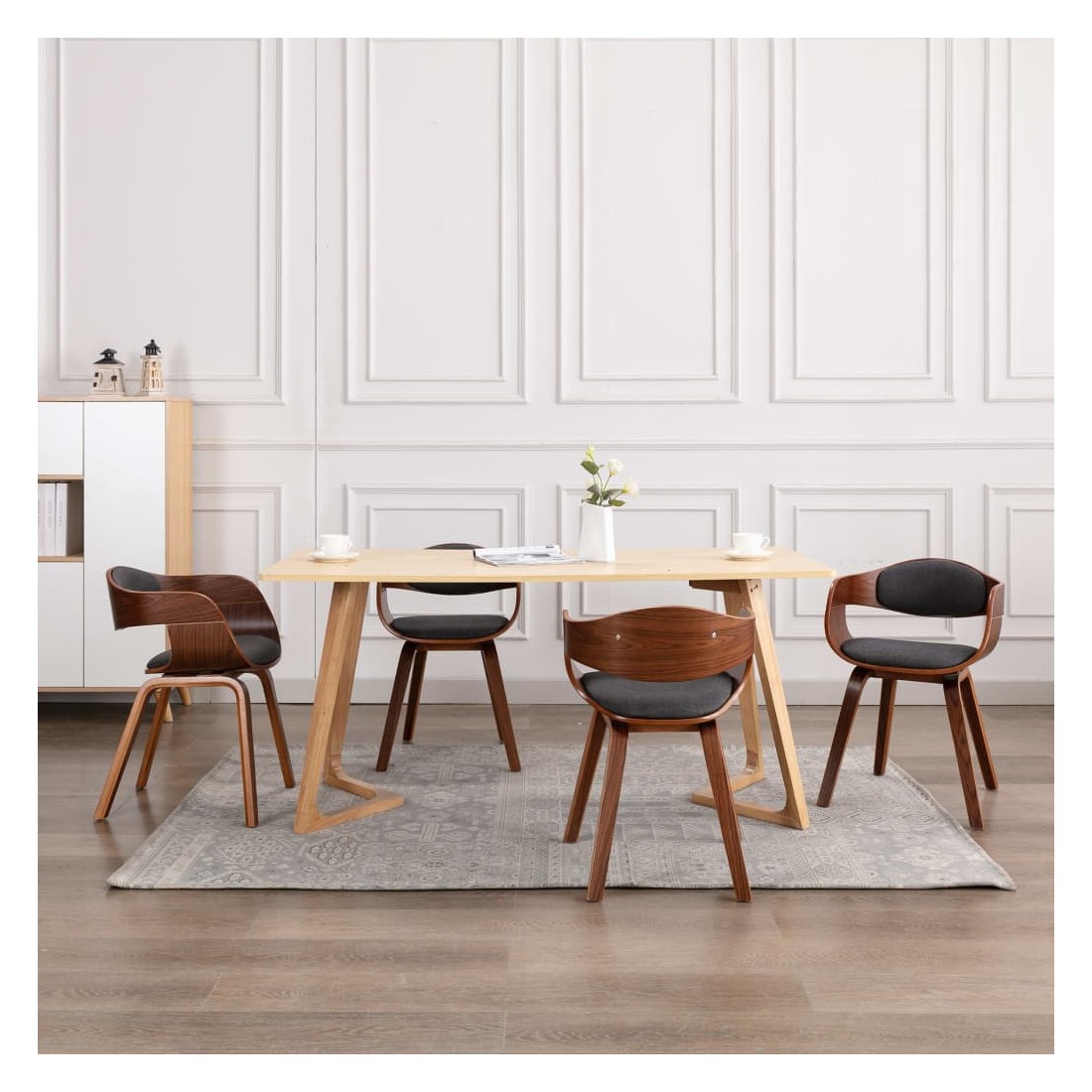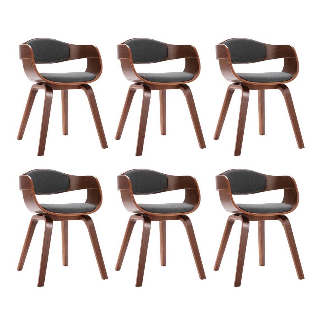 Chaises à manger lot de 6 bois courbé et tissu gris
