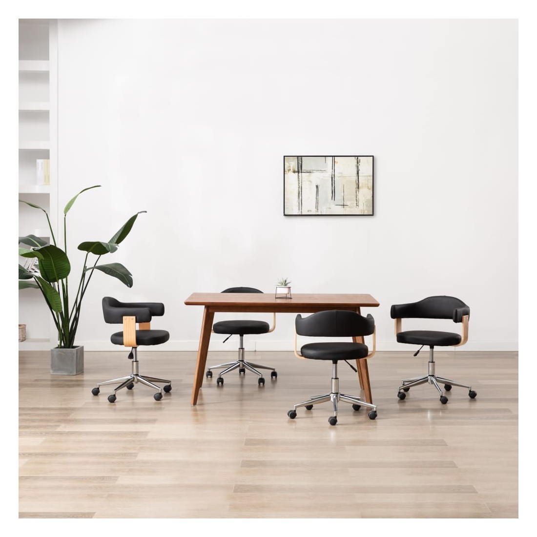 Ces chaises de salle à manger pivotantes, au design élégant et contemporain, sont un supplément parfait, pratique et moderne à n'importe quel salon, chambre à coucher, salon ou bureau. Elle offre un confort optimal pour vos dîners en famille ou vos moments de lecture ou de repos dans le salon. L'assise et le dossier sont conçus de manière ergonomique et rembourrés de similicuir souple, ce qui rend la chaise extrêmement confortable. Le cadre en bois et les pieds en acier ajoutent à sa durabilité ainsi qu'au plaisir esthétique. La chaise pivote à 360 degrés. Le mécanisme de levage à gaz vous permet de régler la hauteur de la chaise de salle à manger. Ces chaises de salle à manger sont également faciles à assembler.