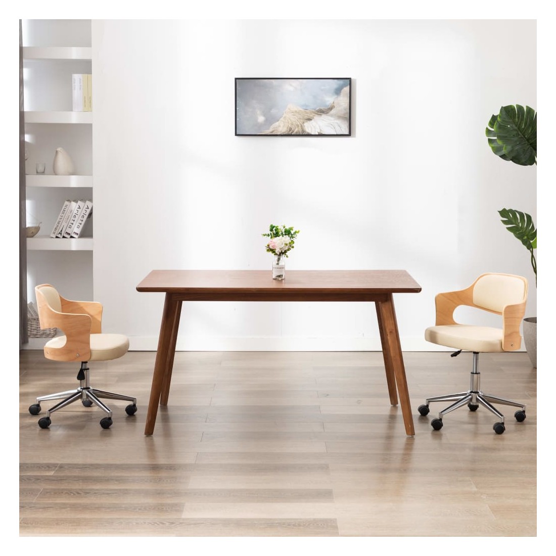 Cet ensemble de 2 chaises à manger, avec son design élégant et contemporain, est destiné à ajouter une touche de classe à tout salon, dortoir, salle de séjour ou bureau. L'assise et le dossier sont tapissés de similicuir facile à nettoyer, ce qui permet d'obtenir un confort optimal de la chaise. Le cadre en bois ajoute de la stabilité à cette chaise latérale. Le dossier et le siège soutiennent votre dos et réduisent la pression sur votre colonne vertébrale. Cette chaise est équipée de 5 roulettes pour la déplacer facilement. Le mécanisme de levage à gaz vous permet de régler la hauteur de la chaise de salle à manger. Ces chaises latérales apporteront une touche de style à n'importe quelle maison ou bureau. Ces chaises de salle à manger sont également faciles à assembler.