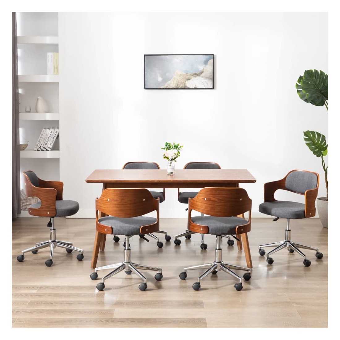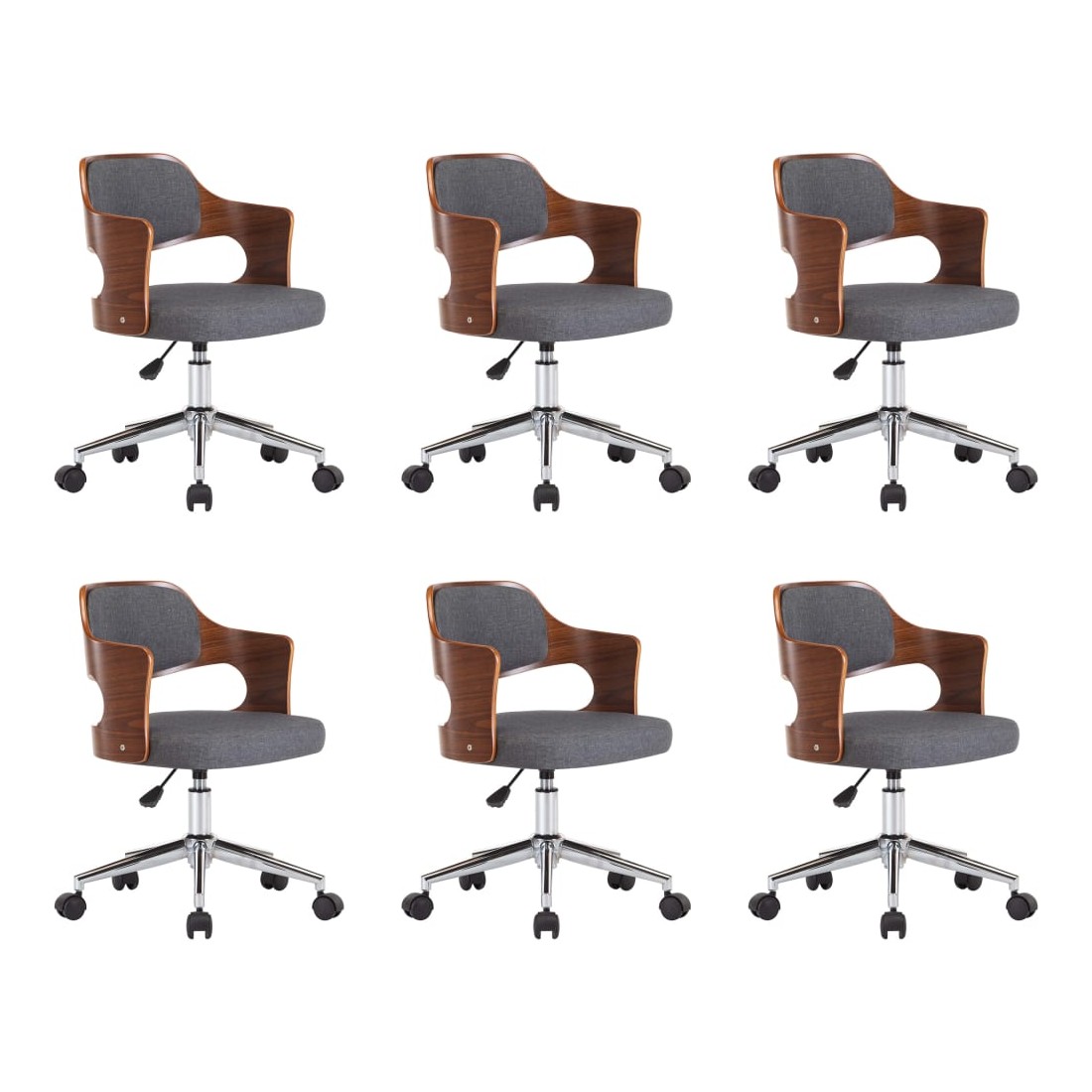 Chaises pivotantes à manger lot de 6 gris bois courbé et tissu