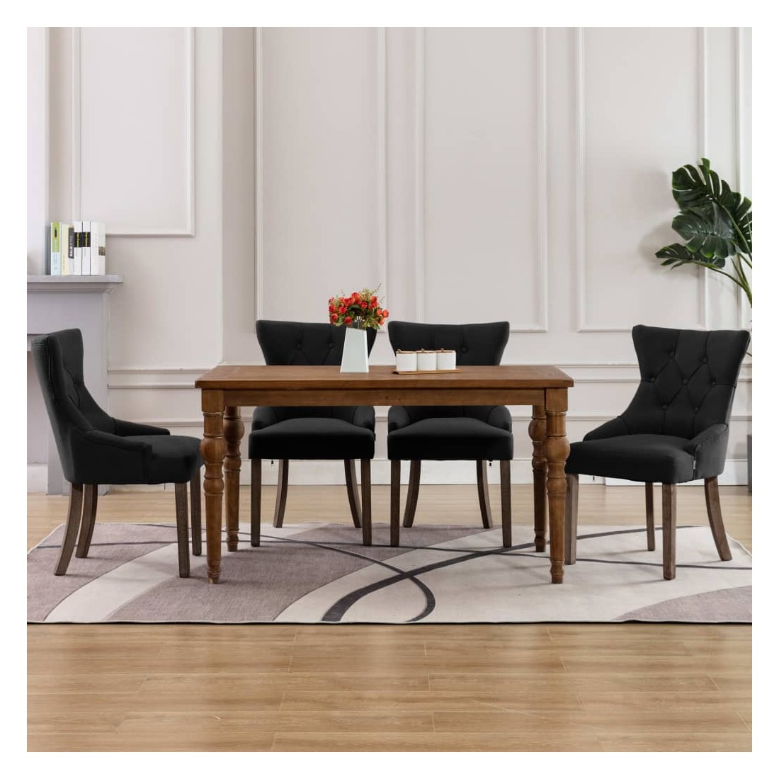 Ajoutez un look moderne et chaleureux à votre salle à manger ou à votre cuisine avec cet ensemble de chaises de salle à manger élégantes ! Avec la belle conception de bouton sur les dossiers, ces chaises de salle à manger sont conçues pour attirer l'attention. Les chaises de cuisine sont rembourrées en tissu doux, ce qui les rend confortables pour les utiliser. Les chaises vous apportent un confort de repos optimal, grâce aux sièges rembourrés et aux dossiers incurvés. De plus, les solides pieds en bois d'hévéa ajoutent une stabilité supplémentaire aux chaises de salle à manger, assurant une longue durée de vie.