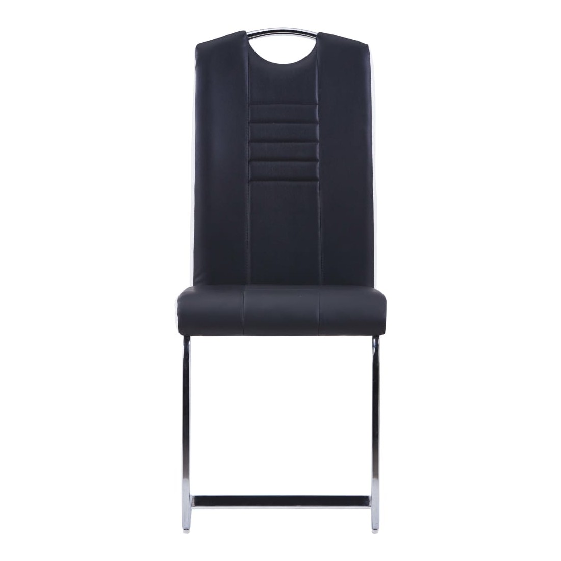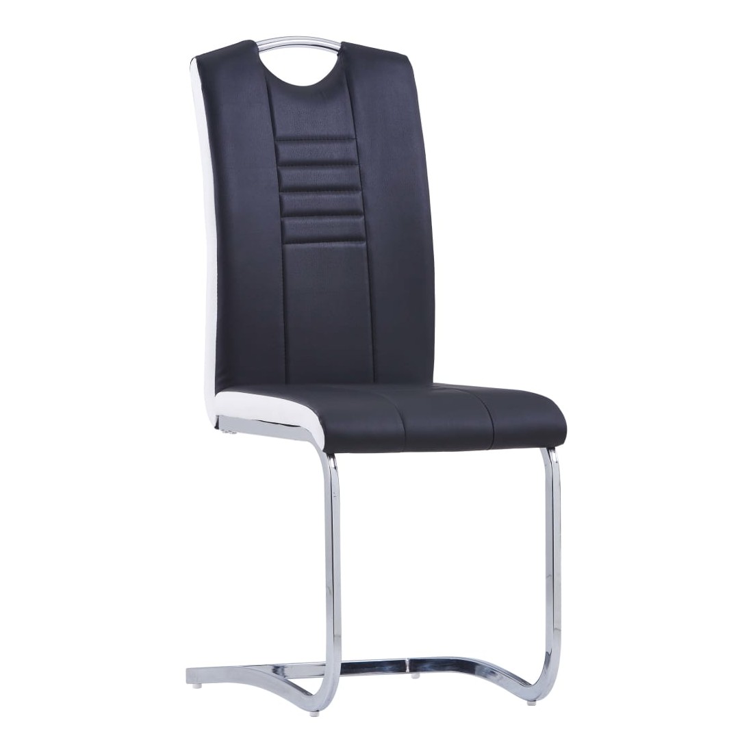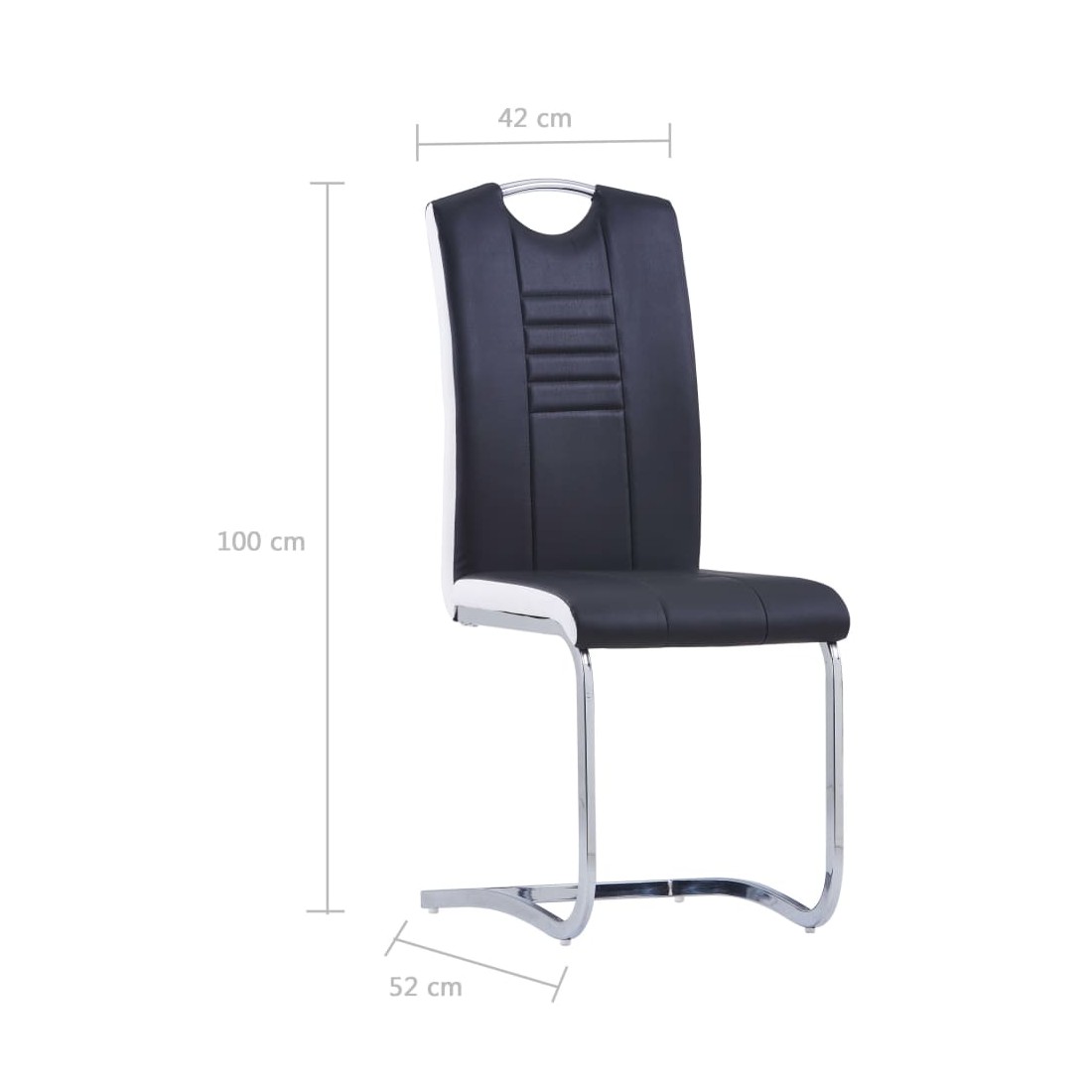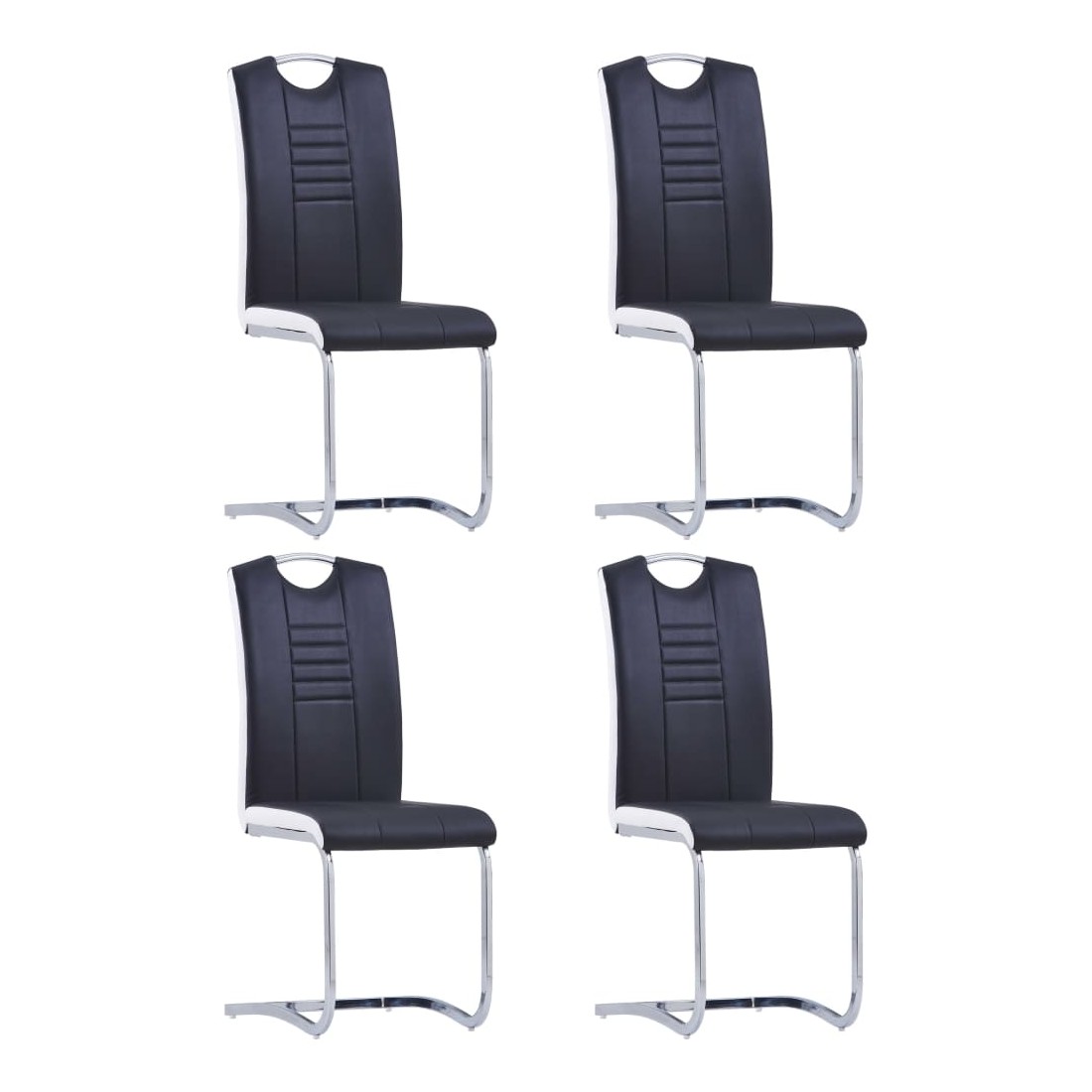 Notre ensemble de chaises de salle à manger cantilever présente un design élégant et moderne, qui sera parfait pour votre maison, votre restaurant ou votre bureau. Les chaises de salle à manger sont recouvertes d'un similicuir durable et facile à nettoyer, ainsi que d'un rembourrage épais pour un maximum de confort. Son design ergonomique rend la chaise de salle à manger extrêmement confortable. Grâce au cadre en acier chromé, les chaises sont considérablement robustes et stables. De plus, avec une poignée sur le dossier, les chaises de salle à manger sont pratiques et faciles à déplacer. La livraison comprend 4 chaises de salle à manger.
