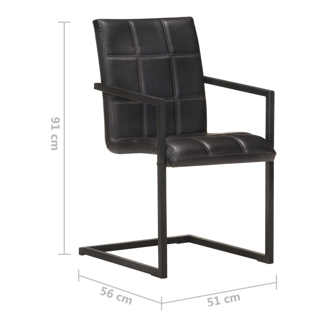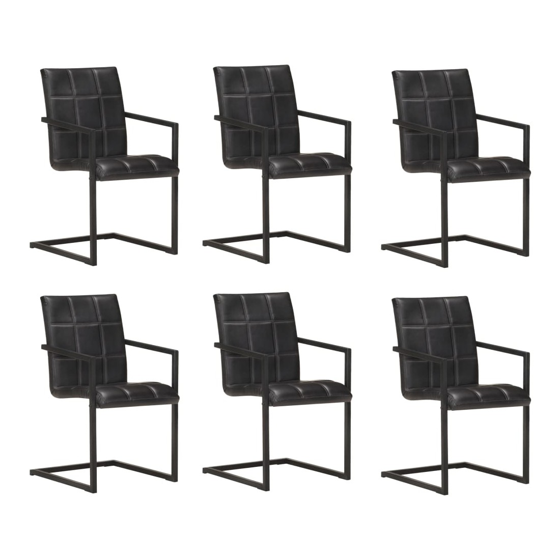 Chaises à manger cantilever lot de 6 noir cuir véritable