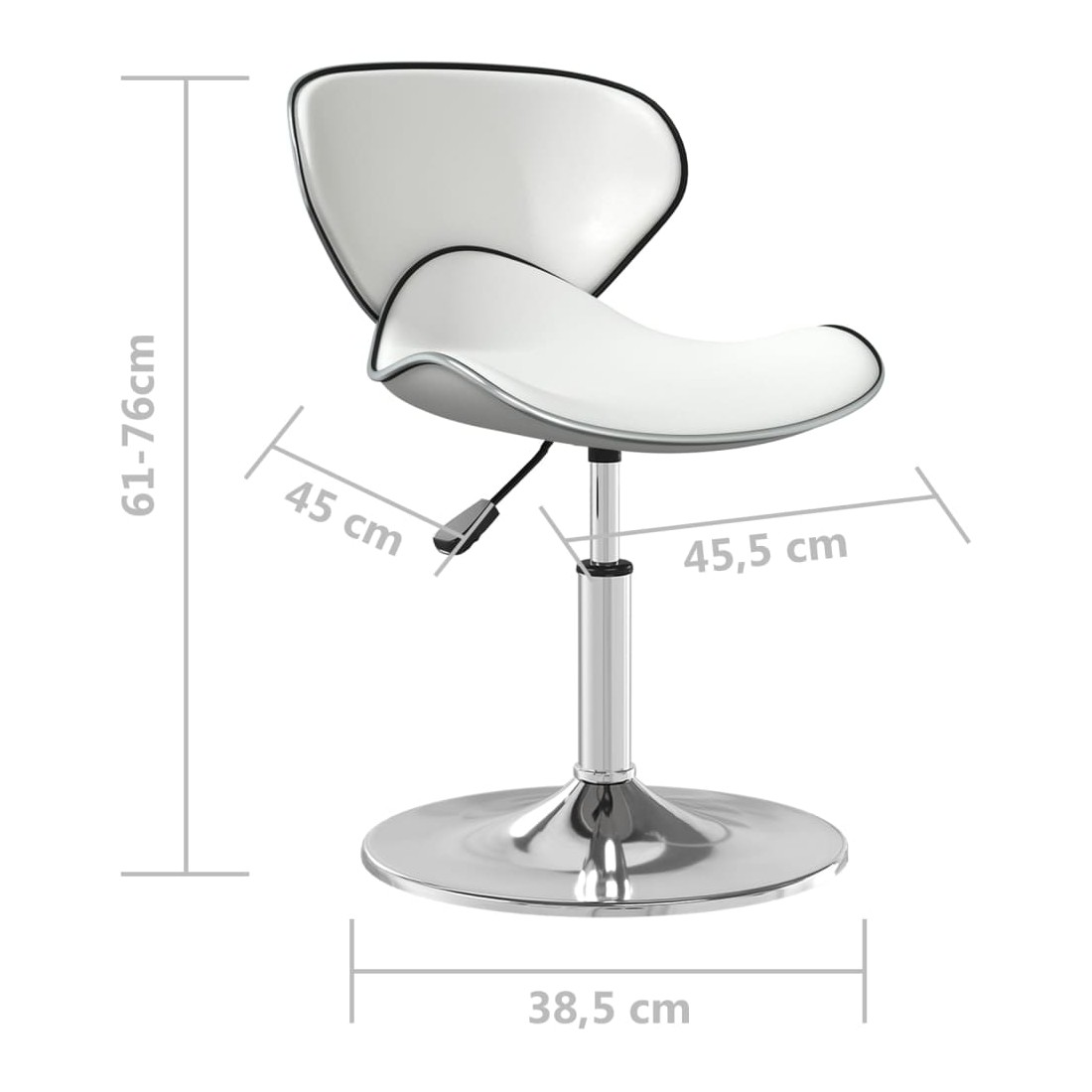 La chaise de salle à manger tendance, au style élégant et moderne, est conçue pour s'adapter à tous les espaces, tels que la maison, le bureau, le bar, le café et ainsi de suite. La chaise est tapissée en similicuir facile à nettoyer pour vous offrir un confort d’assise optimal. La base en acier chromé offre une grande robustesse. Grâce au mécanisme de levage à gaz, le siège peut être réglé en hauteur et s’ajoute parfaitement à tout bar fonctionnel ou salle à manger. Il peut également pivoter à 360 degrés pour une flexibilité incroyable.