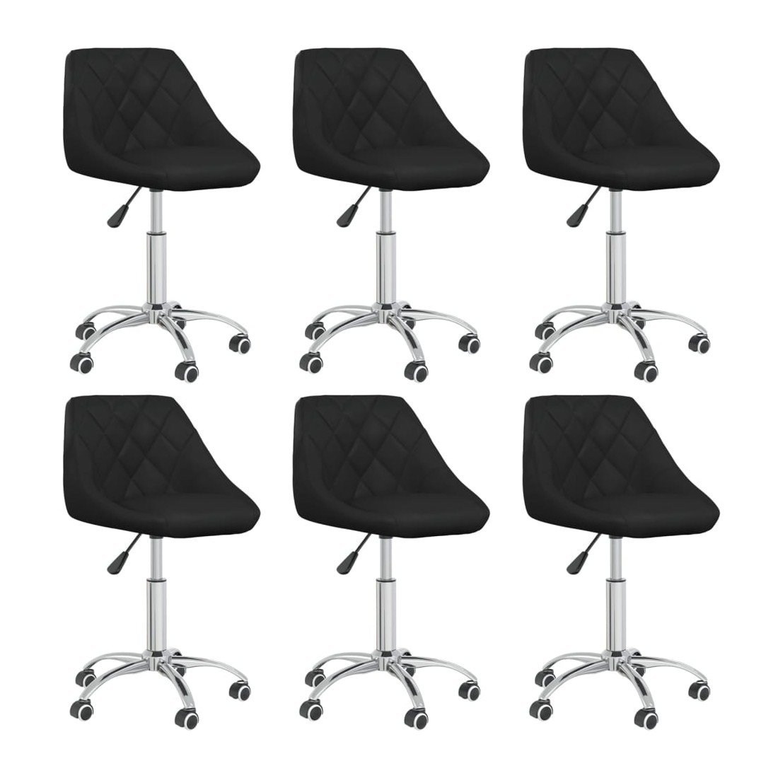 Ces chaises de salle à manger pivotantes tendance au design contemporain constituent un excellent complément à votre espace de vie. Ces chaises pivotantes sont recouvertes de similicuir doux au toucher, vous offrant un confort d'assise optimal. Le cadre en acier chromé offre une grande robustesse. Grâce au mécanisme de levage à gaz, ces chaises de salle à manger sont également réglables en hauteur, ce qui en fait un complément parfait à votre salle à manger. De plus, le siège peut pivoter à 360 degrés avec une grande flexibilité. Et les roulettes vous permettent de vous déplacer librement dans différentes directions.
