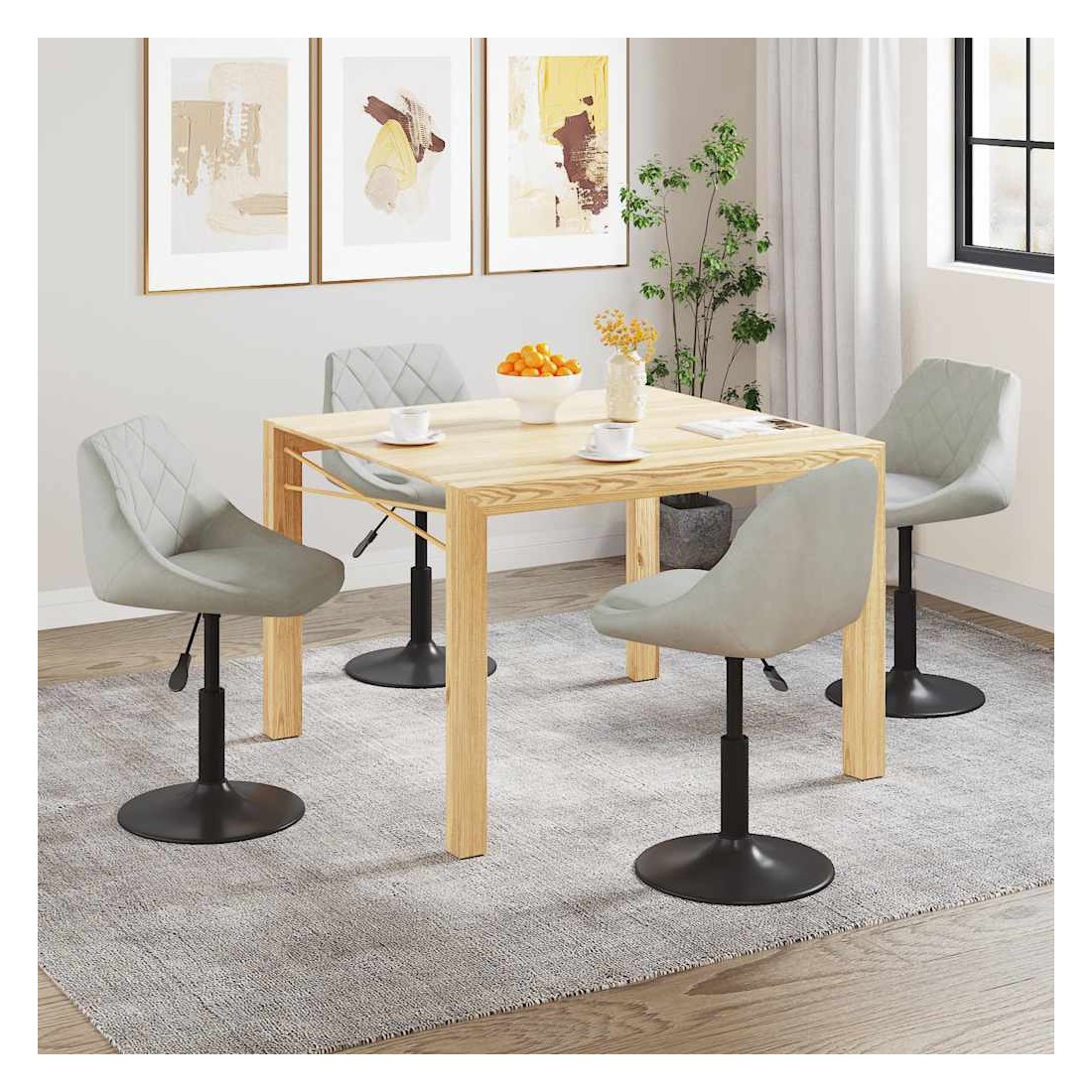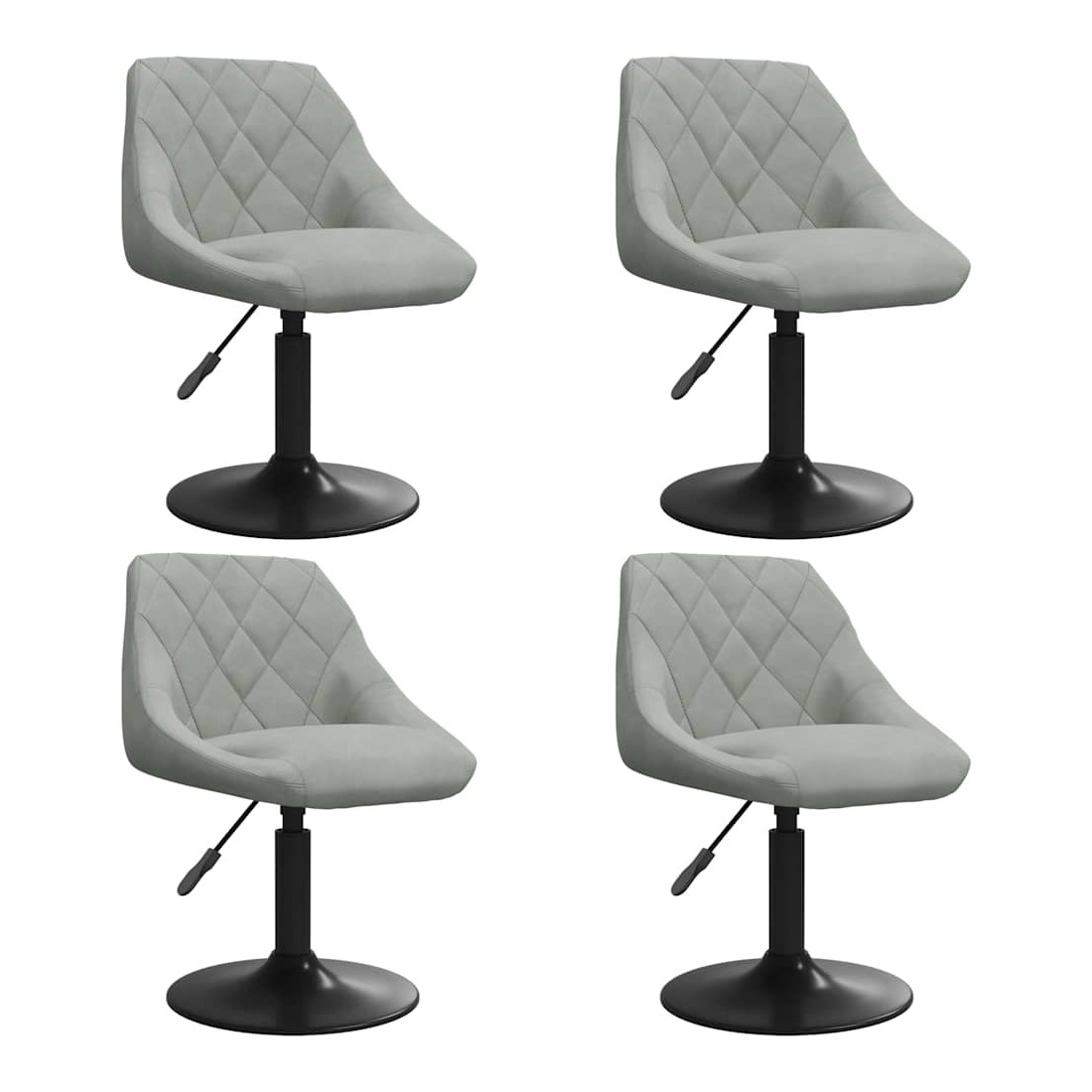 Ces chaises de salle à manger pivotantes à la mode, au design moderne, constituent un excellent supplément à votre espace de vie. Ces chaises pivotantes sont recouvertes de velours doux au toucher, vous offrant un confort d'assise optimal. Le cadre en acier enduit de poudre noire offre une grande robustesse. Grâce au mécanisme de levage à gaz, ces chaises de salle à manger peuvent également être ajustées en hauteur, ce qui en fait un complément parfait à votre salle à manger. Elles pivotent également à 360 degrés avec une grande flexibilité.