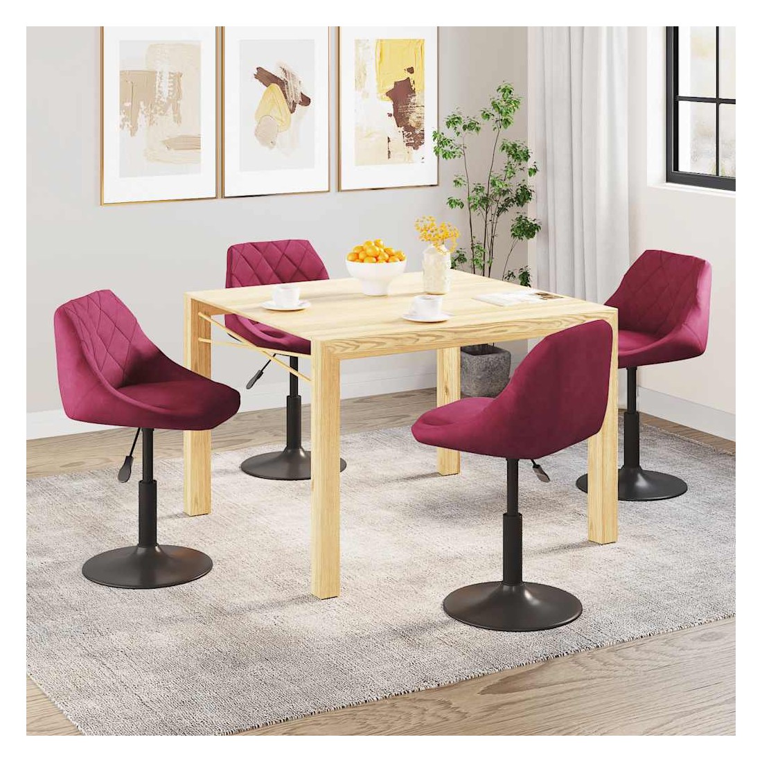 Ces chaises de salle à manger pivotantes à la mode, au design moderne, constituent un excellent supplément à votre espace de vie. Ces chaises pivotantes sont recouvertes de velours doux au toucher, vous offrant un confort d'assise optimal. Le cadre en acier enduit de poudre noire offre une grande robustesse. Grâce au mécanisme de levage à gaz, ces chaises de salle à manger peuvent également être ajustées en hauteur, ce qui en fait un complément parfait à votre salle à manger. Elles pivotent également à 360 degrés avec une grande flexibilité.