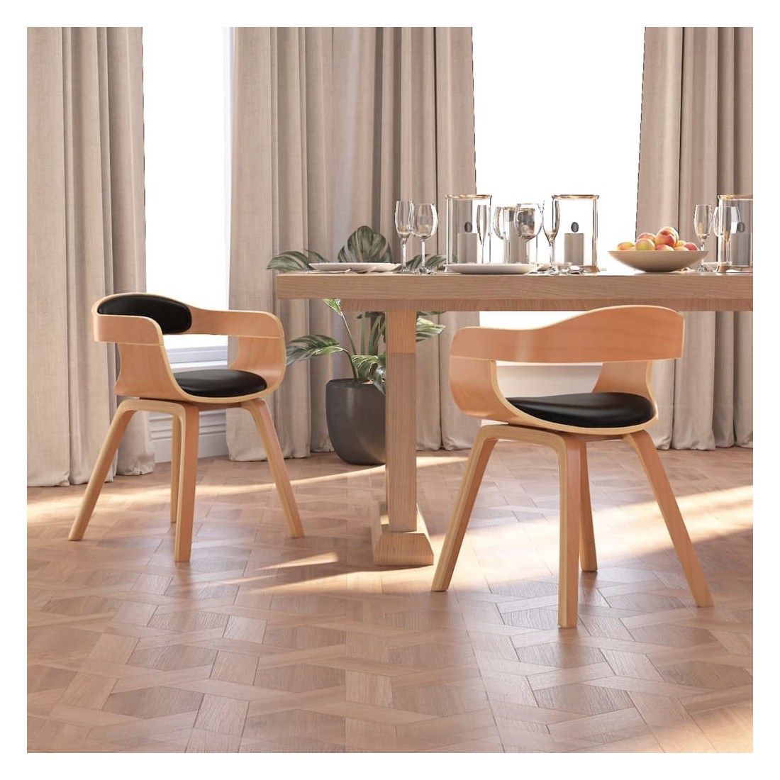 Cet ensemble de chaises de salle à manger élégant au design esthétique et ergonomique constitue un supplément décoratif et confortable à votre salle à manger et à votre cuisine. La chaise de salle à manger est rembourrée en similicuir, doux pour vous asseoir et facile à nettoyer. Grâce au siège et au dossier rembourrés en mousse, cette chaise de cuisine offre un confort d'assise optimal. Les pieds en bois courbé de haute qualité rendent la chaise très solide et durable et ajoutent à son aspect chic.