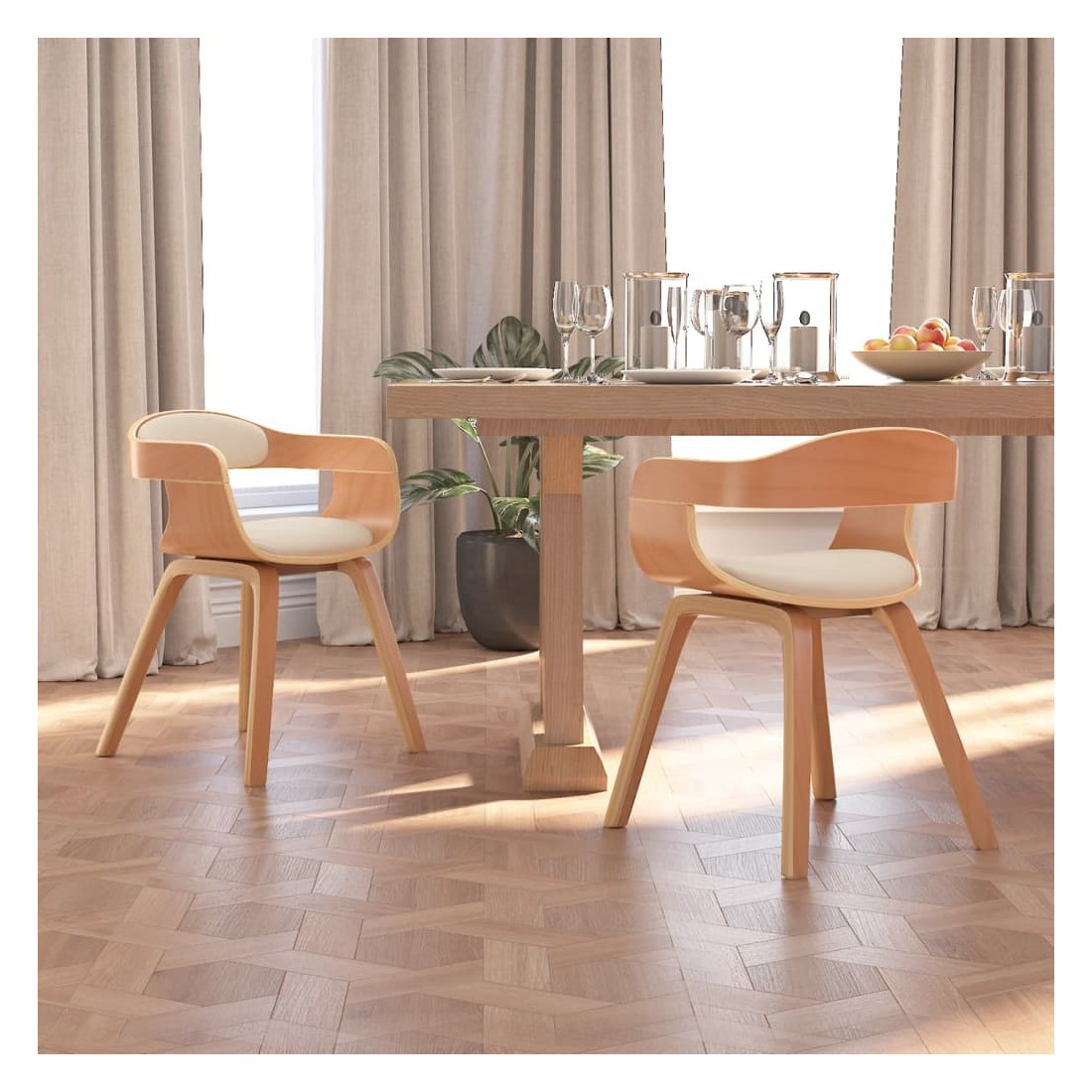 Cet ensemble de chaises de salle à manger élégant au design esthétique et ergonomique constitue un supplément décoratif et confortable à votre salle à manger et à votre cuisine. La chaise de salle à manger est rembourrée en similicuir, doux pour vous asseoir et facile à nettoyer. Grâce au siège et au dossier rembourrés en mousse, cette chaise de cuisine offre un confort d'assise optimal. Les pieds en bois courbé de haute qualité rendent la chaise très solide et durable et ajoutent à son aspect chic.
