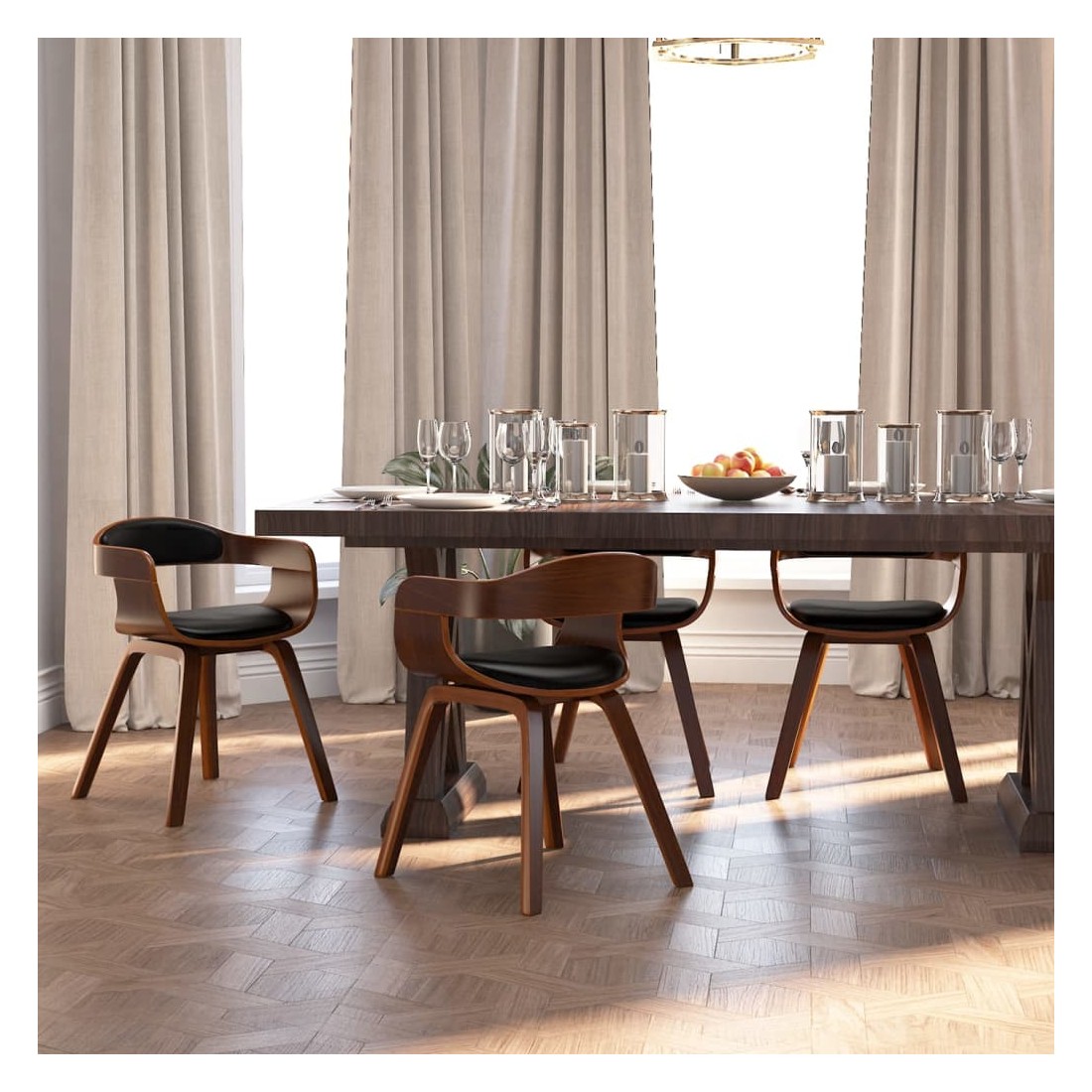 Cet ensemble de chaises de salle à manger élégant au design esthétique et ergonomique constitue un supplément décoratif et confortable à votre salle à manger et à votre cuisine. La chaise de salle à manger est rembourrée en similicuir, doux pour vous asseoir et facile à nettoyer. Grâce au siège et au dossier rembourrés en mousse, cette chaise de cuisine offre un confort d'assise optimal. Les pieds en bois courbé de haute qualité rendent la chaise très solide et durable et ajoutent à son aspect chic.