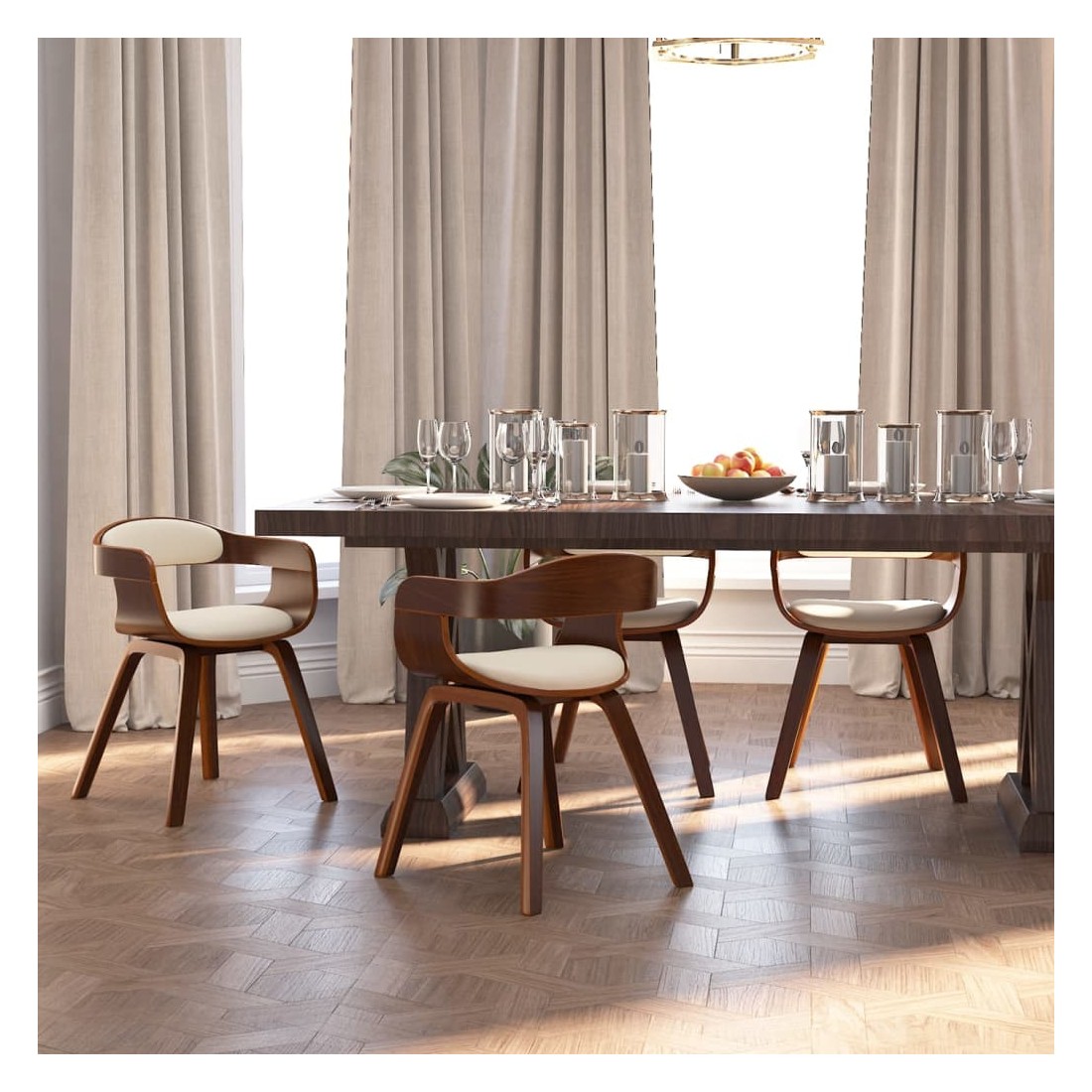Cet ensemble de chaises de salle à manger élégant au design esthétique et ergonomique constitue un supplément décoratif et confortable à votre salle à manger et à votre cuisine. La chaise de salle à manger est rembourrée en similicuir, doux pour vous asseoir et facile à nettoyer. Grâce au siège et au dossier rembourrés en mousse, cette chaise de cuisine offre un confort d'assise optimal. Les pieds en bois courbé de haute qualité rendent la chaise très solide et durable et ajoutent à son aspect chic.