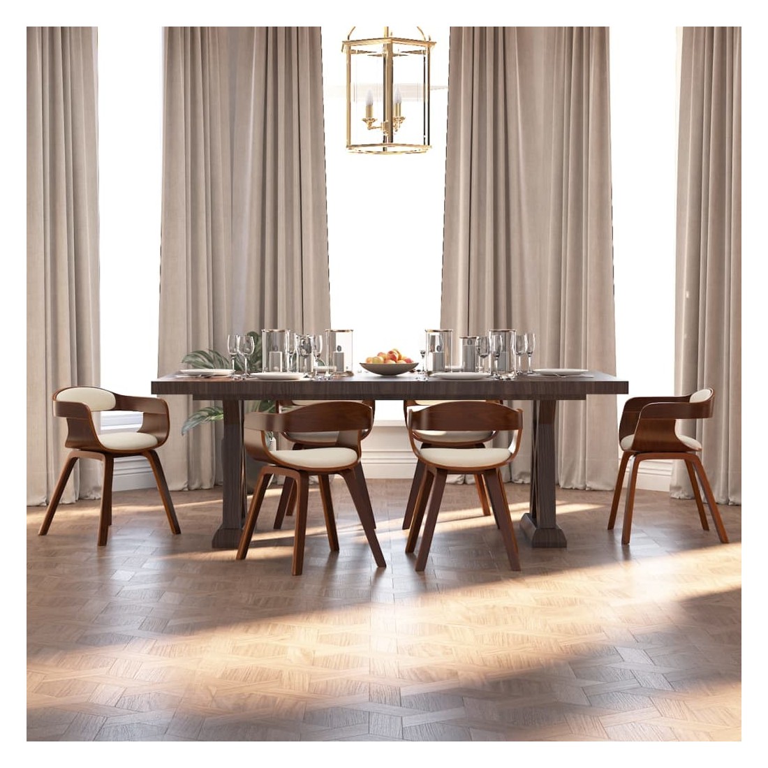 Cet ensemble de chaises de salle à manger élégant au design esthétique et ergonomique constitue un supplément décoratif et confortable à votre salle à manger et à votre cuisine. La chaise de salle à manger est rembourrée en similicuir, doux pour vous asseoir et facile à nettoyer. Grâce au siège et au dossier rembourrés en mousse, cette chaise de cuisine offre un confort d'assise optimal. Les pieds en bois courbé de haute qualité rendent la chaise très solide et durable et ajoutent à son aspect chic.