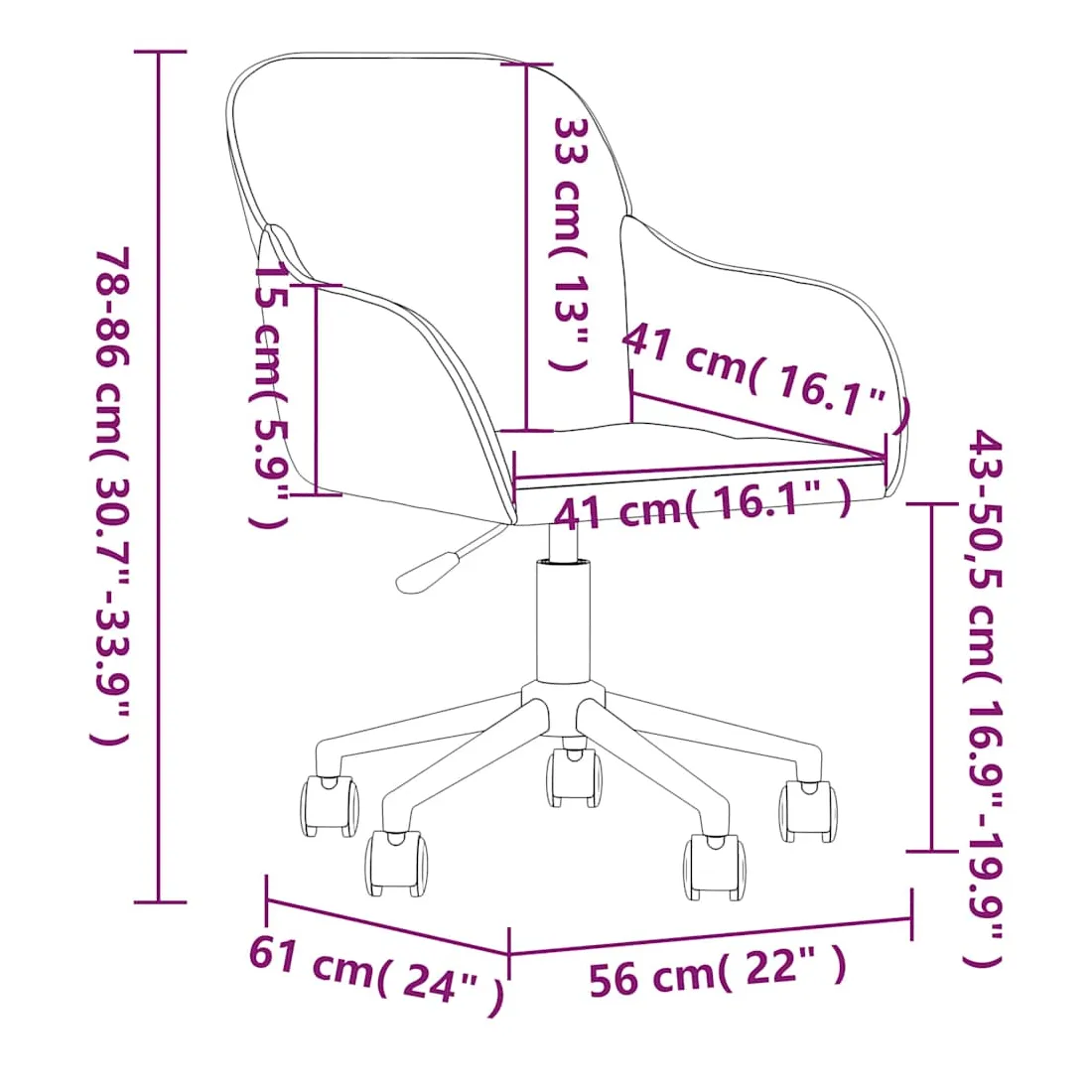 - Dimensions totales : 56 x 61 x (78-86) cm (l x P x H)