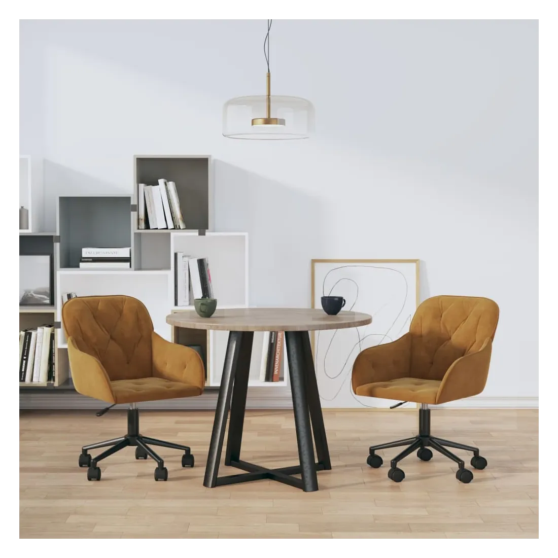 Que vous soyez en train de dîner dans la salle à manger, ou simplement de lire et de vous détendre dans le salon, ces chaises de salle à manger peuvent parfaitement répondre à vos besoins. Velours doux : le velours est un tissu doux et luxueux qui se reconnaît à son tas dense de fibres uniformément coupées qui ont une touche lisse. Le tissu en velours présente un toucher doux distinctif, ce qui le rend confortable/agréable au toucher.Grande flexibilité : utilisez le levier pour régler la hauteur de votre siège à votre convenance. De plus, la conception pivotante à 360 degrés et les roulettes roulantes permettent une plus grande amplitude de mouvement.Cadre stable et solide : les cadres en métal et en contreplaqué de la chaise assurent robustesse et stabilité. Remarque :Chaque produit est livré avec un manuel de montage dans la boîte pour un montage facile.