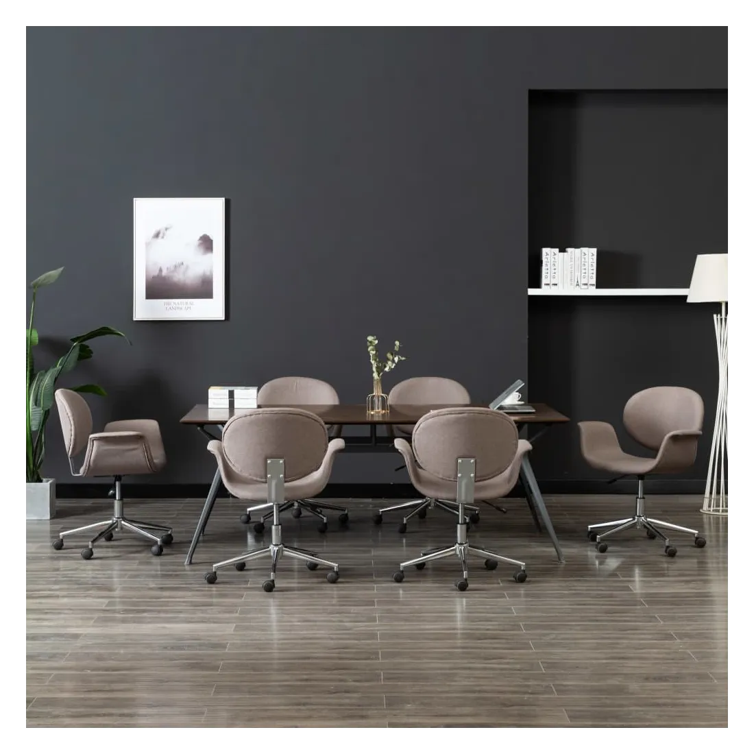 Cet ensemble de 6 chaises de salle à manger pivotante, au design élégant et contemporain, est un supplément parfait, pratique et moderne à n'importe quel salon, chambre à coucher, salon ou bureau. Elle offre un endroit confortable pour votre famille pour dîner dans la salle à manger ou manger et se reposer dans le salon. Le siège et le dossier sont ergonomiques, tapissés en tissu doux et bien rembourrés de mousse, ce qui rend la chaise très confortable. Les pieds en métal ajoutent à sa durabilité et sont esthétiques. La chaise est pivotante à 360 degrés et dispose d'un mécanisme réglable en hauteur avec le système de levage à gaz. Ces chaises de salle à manger sont également faciles à assembler.