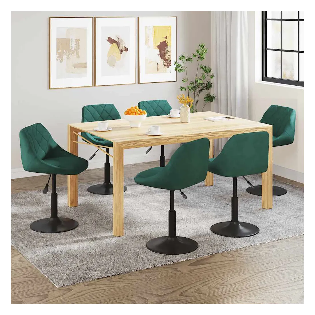 Ces chaises de salle à manger pivotantes à la mode, au design moderne, constituent un excellent supplément à votre espace de vie. Ces chaises pivotantes sont recouvertes de velours doux au toucher, vous offrant un confort d'assise optimal. Le cadre en acier enduit de poudre noire offre une grande robustesse. Grâce au mécanisme de levage à gaz, ces chaises de salle à manger peuvent également être ajustées en hauteur, ce qui en fait un complément parfait à votre salle à manger. Elles pivotent également à 360 degrés avec une grande flexibilité.