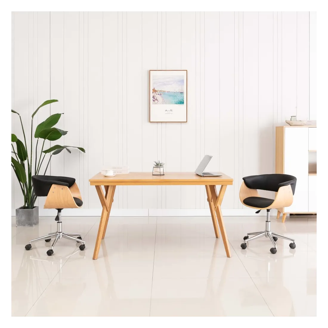 Cette chaise de salle à manger pivotante, au design élégant et contemporain, est un supplément parfait, pratique et moderne à n'importe quel salon, chambre à coucher, salon ou bureau. Elle offre un endroit confortable pour votre famille pour dîner dans la salle à manger ou manger et se reposer dans le salon. Le siège et le dossier, tapissés en similicuir doux et bien rembourrés de mousse, rendent la chaise très confortable. Le cadre en bois et les pieds en métal ajoutent à sa durabilité et sont esthétiques. La chaise est pivotante à 360 degrés et dispose d'un mécanisme réglable en hauteur avec le système de levage à gaz. La chaise de salle à manger est facile à assembler.