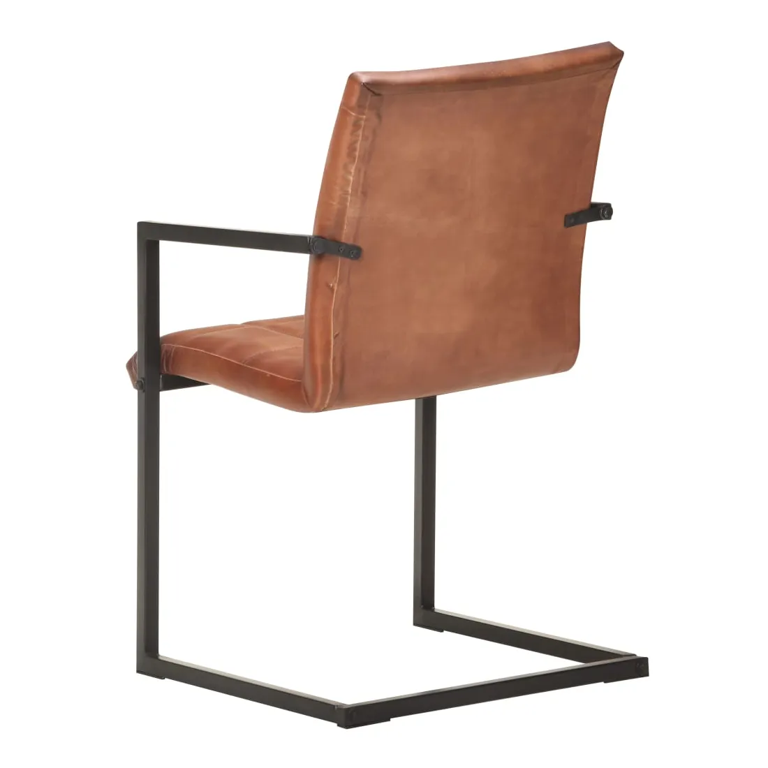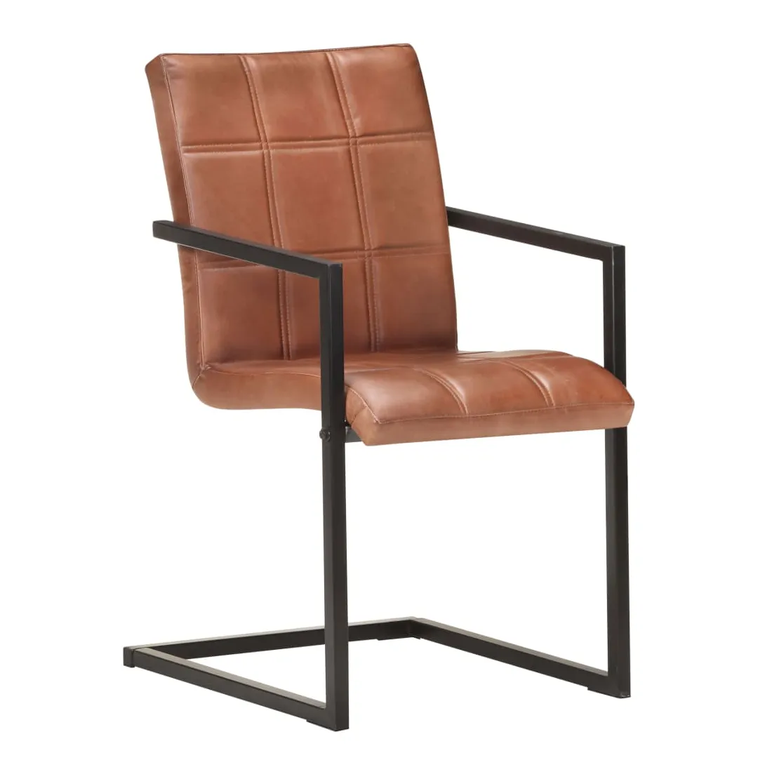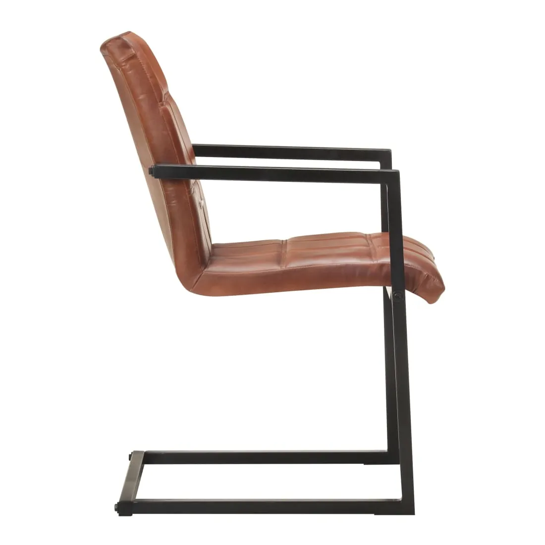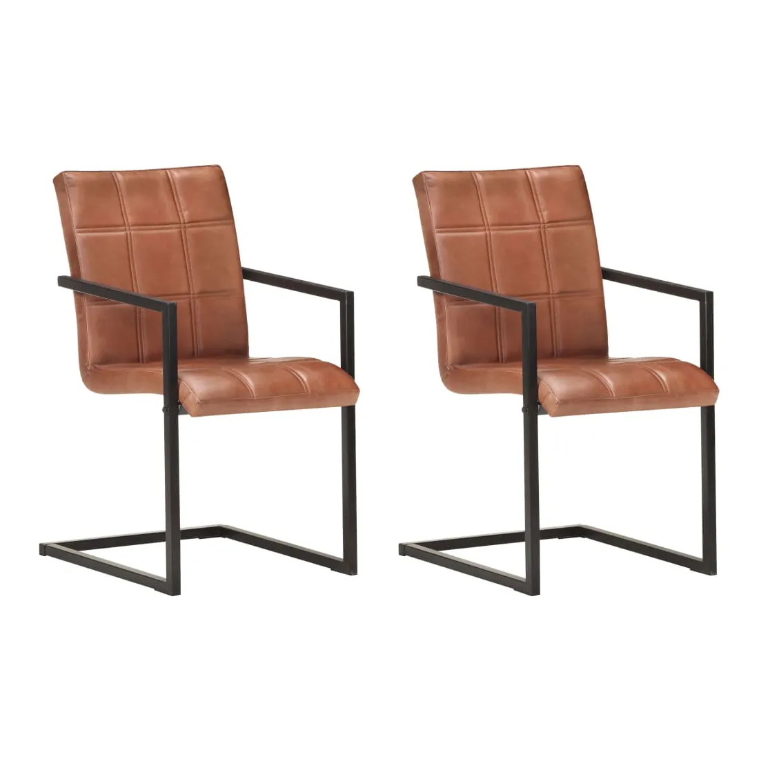 Chaises à manger cantilever lot de 2 marron cuir véritable
