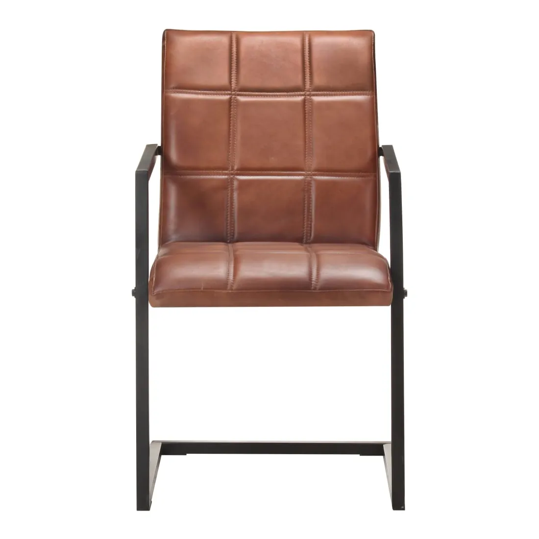 Ces chaises de salle à manger cantilever avec leur design rétro et au motif de blocs conviendront à toute cuisine ou salle à manger. Grâce à l'assise et au dossier bien rembourrés, ces chaises en cuir véritable sont très confortables et faciles à nettoyer. Les cadres en fer enduit de poudre robuste les rendent résistantes et durables.