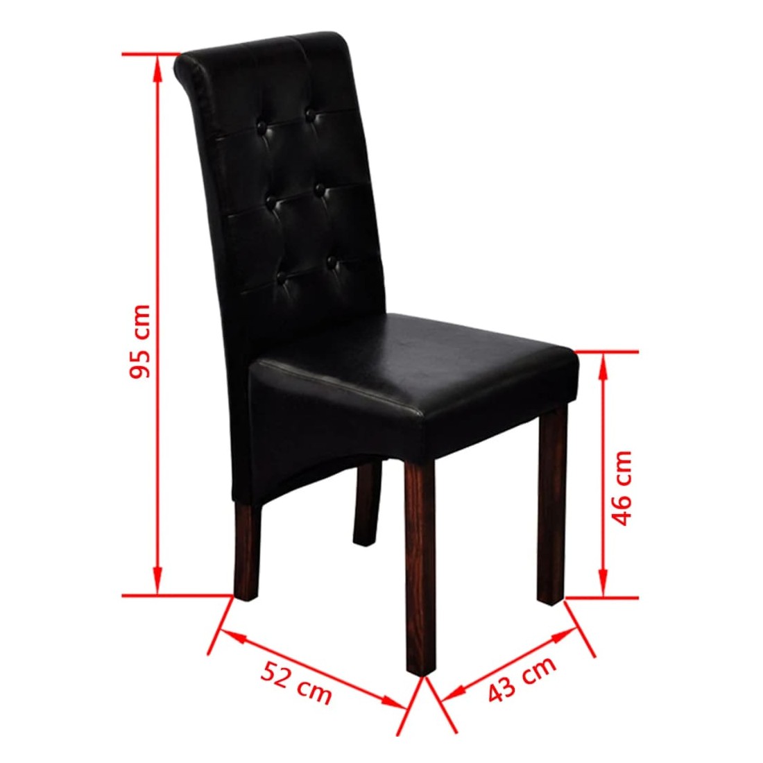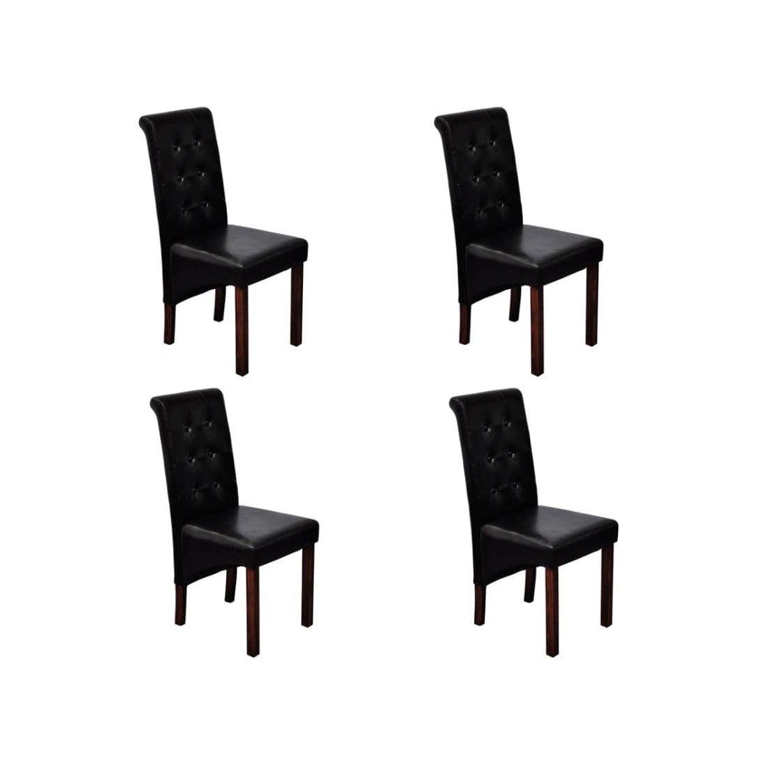 Cet ensemble de 4 chaises de salle à manger, confortables et grandes, a un design antique et les chaises ont des sièges et des dossiers ergonomiques. Les jambes sont faites de bois solide dans une couleur brun foncé vernie et les coins sont arrondis pour la sûreté. Les chaises peuvent être entretenues et nettoyées facilement. Les sièges et le dossier de ces chaises sont rembourrés de cuir synthétique durable.
