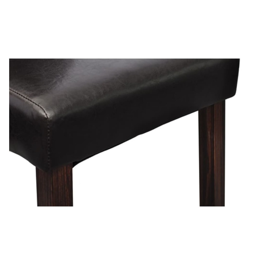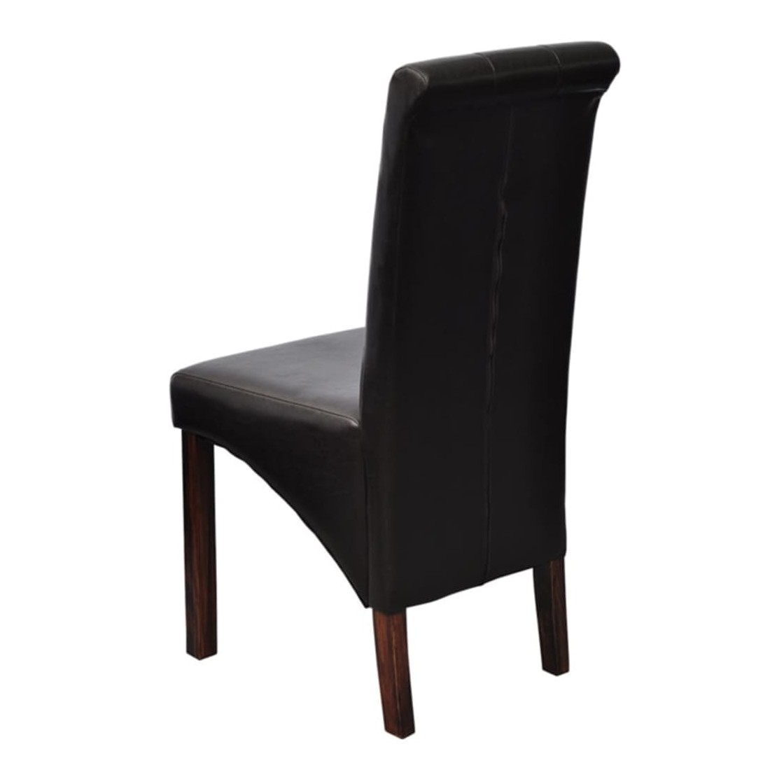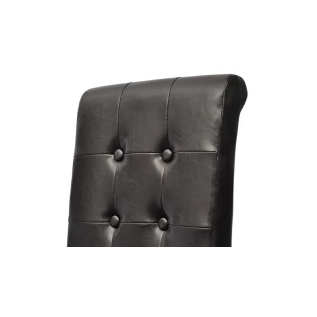 Cet ensemble de 4 chaises de salle à manger, confortables et grandes, a un design antique et les chaises ont des sièges et des dossiers ergonomiques. Les jambes sont faites de bois solide dans une couleur brun foncé vernie et les coins sont arrondis pour la sûreté. Les chaises peuvent être entretenues et nettoyées facilement. Les sièges et le dossier de ces chaises sont rembourrés de cuir synthétique durable.