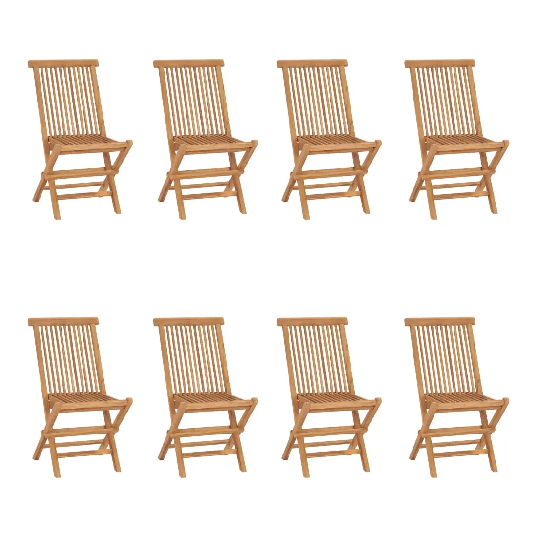 Cet ensemble de chaises de jardin, au design simple mais élégant, vous offre une expérience d'assise confortable. Construite à partir de bois dur de teck extrêmement durable, cette pièce de meuble en teck a été chevronnée, séchée au four puis poncée finement lui pour donner un aspect très lisse. Le bois de teck est connu pour sa solidité et sa résistance aux intempéries exceptionnelles, ce qui le rend bien plus adapté aux meubles de jardin que tout autre type de bois. Le bois de teck est le choix parfait si vous souhaitez acheter un meuble de jardin durable. De plus, les chaises en bois peuvent être facilement repliées lorsqu'elles ne sont pas utilisées. Remarque : afin de prolonger la durée de vie de vos meubles d'extérieur, nous vous recommandons de les nettoyer régulièrement et de ne pas les laisser à l'extérieur sans protection inutilement.Nettoyage : utiliser une solution savonneuse douceStockage : si possible, stockez dans un endroit frais et sec à l'intérieur. Si le produit est stocké à l'extérieur, protégez-le avec une housse imperméable. Essuyez et séchez l'excès d'eau ou de neige des surfaces planes après la pluie ou une chute de neige. Permettez une circulation d'air suffisante afin d'éviter les dommages liés à l'humidité.