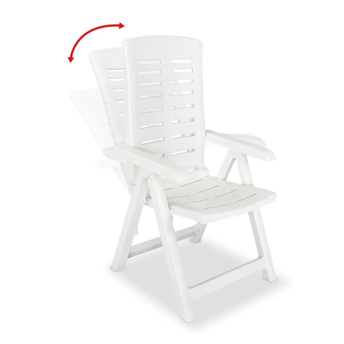 Ces chaises de jardin résistantes aux intempéries seront un excellent ajout à votre jardin ou patio. Stable et durable : le plastique est un matériau polyvalent connu pour sa légèreté, sa durabilité et sa facilité à nettoyer. Le matériau consiste en un plastique durable et résistant aux intempéries, ce qui rend cette boîte de rangement parfaite pour une utilisation à l'intérieur et à l'extérieur.Expérience d'assise confortable : les dossiers des chaises disposent de 4 positions d'inclinaison, de sorte que vous pouvez toujours trouver la position la plus confortable.Conception légère : grâce à leur structure légère, ces chaises sont faciles à déplacer.Conception pratique : ces chaises de jardin peuvent être pliées pour économiser de l'espace lorsqu'elles ne sont pas utilisées. Bon à savoir :Pour que vos meubles d'extérieur restent beaux, nous vous recommandons de les protéger avec une housse imperméable.