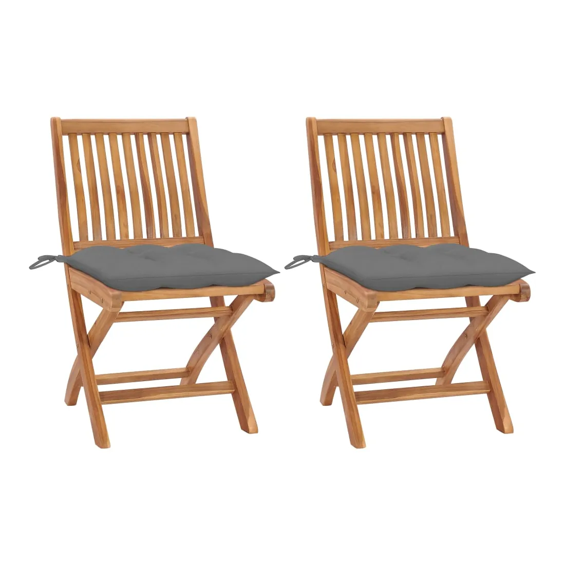 Chaises de jardin lot de 2 et coussins gris Bois de teck massif