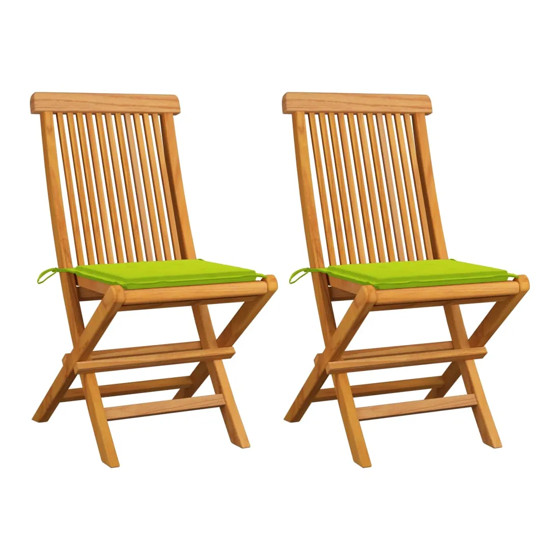 Chaises de jardin avec coussins vert vif lot de 2 Bois de teck
