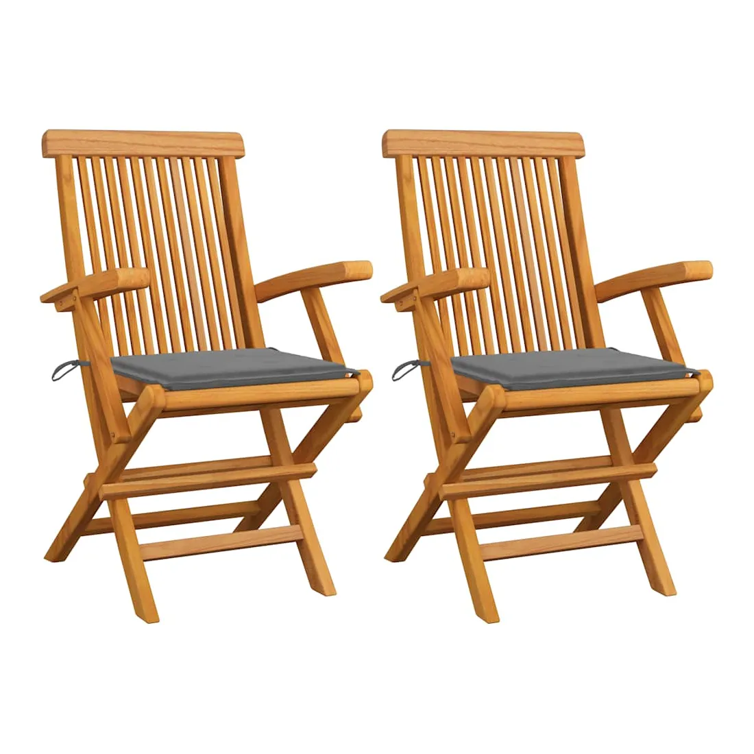 Cet ensemble de chaises de jardin en bois se compose de 2 pièces et est destiné à être un excellent supplément à votre jardin, terrasse ou patio. Vous pouvez vous détendre et discuter avec la famille et les amis ou profiter du bon temps. Fabriquée en bois dur de teck extrêmement durable, cette pièce de meuble en teck a été chevronnée, séchée au four puis finement poncée pour lui donner un aspect très lisse. Le bois de teck est connu pour sa résistance exceptionnelle aux intempéries, ce qui le rend bien plus adapté aux meubles de jardin que tout autre type de bois. Le bois de teck est le choix idéal si vous souhaitez acheter une pièce de meubles de jardin durable. La surface poncée est facile à nettoyer avec un chiffon humide. Ces chaises d'extérieur sont également légères, ce qui les rend complètement flexibles et faciles à déplacer. Les chaises en bois peuvent être pliées pour gagner de la place lorsqu'elles ne sont pas utilisées. De plus, les coussins de siège inclus offrent également un confort d'assise supplémentaire.