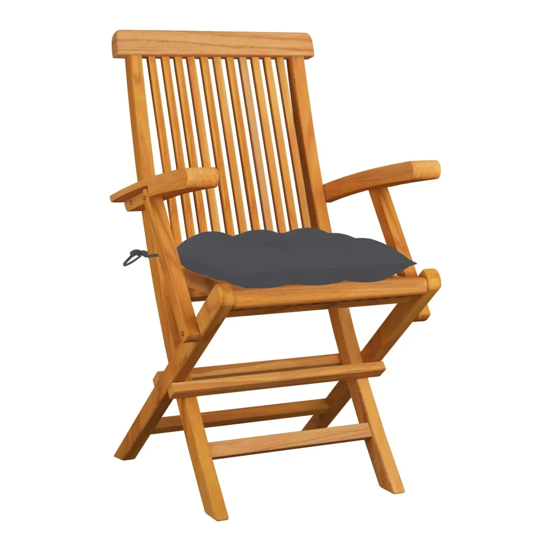 Chaises de jardin avec coussins anthracite lot de 3 Bois teck