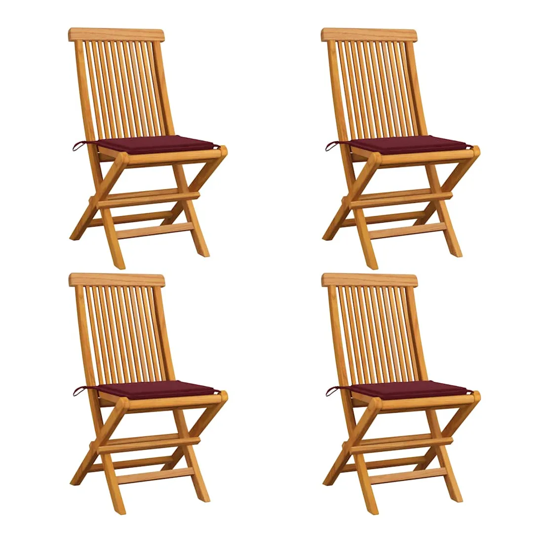 Chaises de jardin avec coussins rouge bordeaux lot de 4 Teck