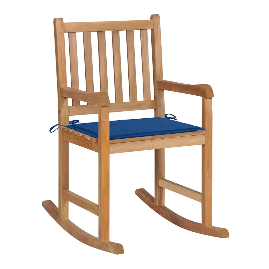 Chaise à bascule avec coussin bleu royal Bois de teck solide
