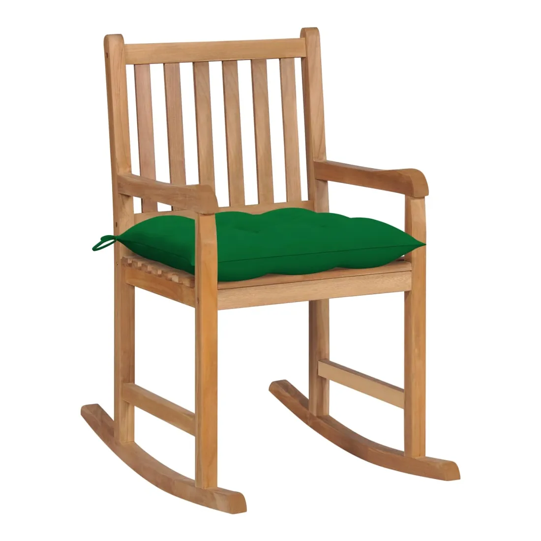 Cette chaise à bascule en bois sera un choix parfait pour profiter de votre temps libre. Elle est idéale pour usage à l'intérieur et l'extérieur. Fabriquée en bois dur de teck extrêmement durable, cette pièce de meuble en teck a été chevronnée, séchée au four puis finement poncée pour lui donner un aspect très lisse. Le bois de teck est connu pour sa résistance exceptionnelle aux intempéries, ce qui le rend bien plus adapté aux meubles de jardin que tout autre type de bois. Le bois de teck est le choix idéal si vous souhaitez acheter un meuble de jardin durable. Le dossier et l'assise à lattes peuvent offrir un excellent soutien. C'est le meilleur siège pour discuter, lire, regarder la télévision ou simplement vous détendre ! Le coussin inclus est pratique et a une fonction décorative.