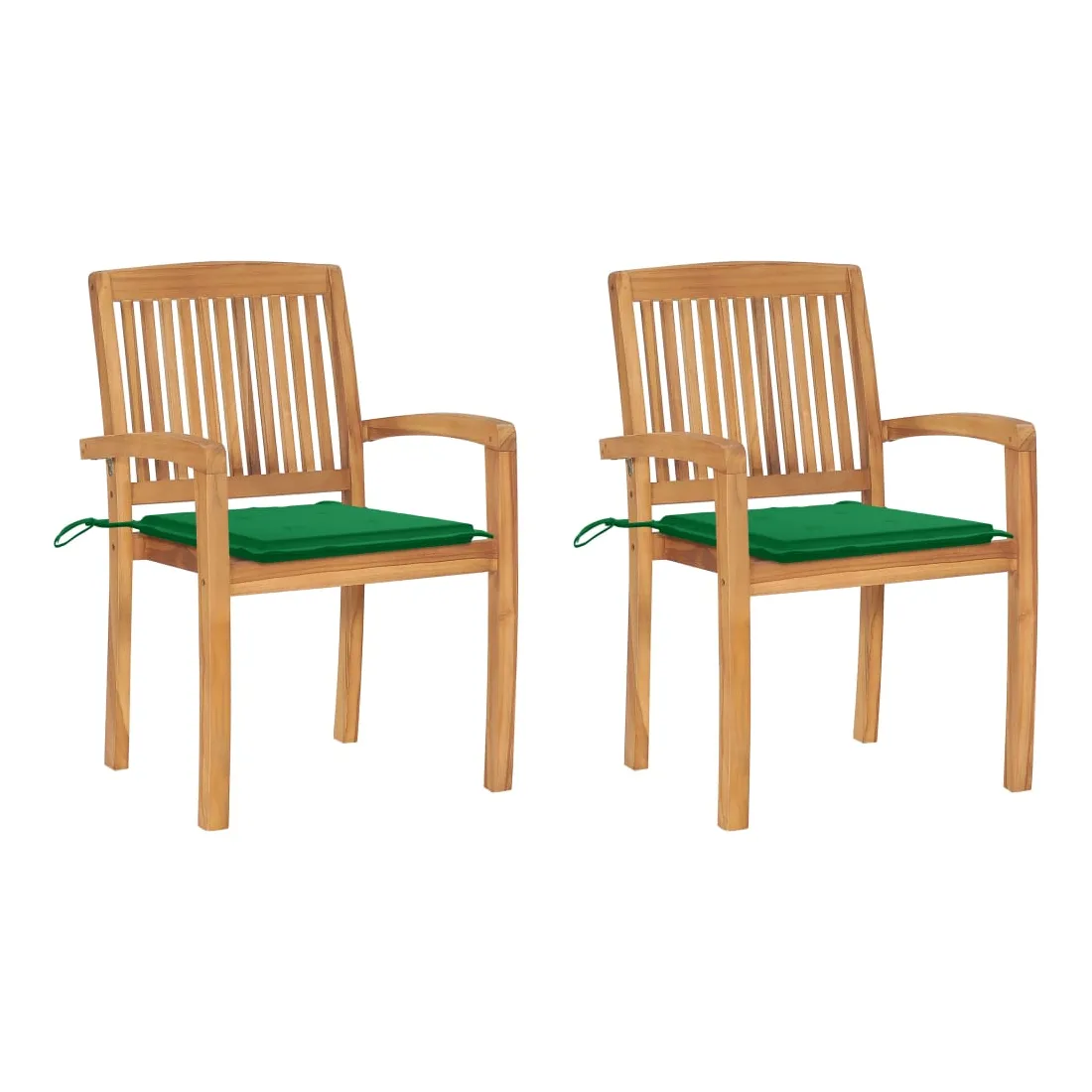 Ces chaises de jardin en bois ajoutent un aspect vintage à votre jardin, patio ou tout autre espace de vie extérieur. Fabriquée en bois dur de teck extrêmement durable, cette pièce de meuble en teck a été chevronnée, séchée au four puis finement poncée pour lui donner un aspect très lisse. Le bois de teck est connu pour sa résistance exceptionnelle aux intempéries, ce qui le rend bien plus adapté aux meubles de jardin que tout autre type de bois. Le bois de teck est le choix idéal si vous souhaitez acheter un meuble de jardin durable. L’ensemble de chaises d’extérieur comprend des dossiers à lattes et des accoudoirs légèrement incurvés, offrant un confort d’assise supplémentaire. Elles sont également empilables pour économiser de l’espace lorsqu'elles ne sont pas utilisées. Les coussins inclus sont pratiques et ont une fonction décorative.
