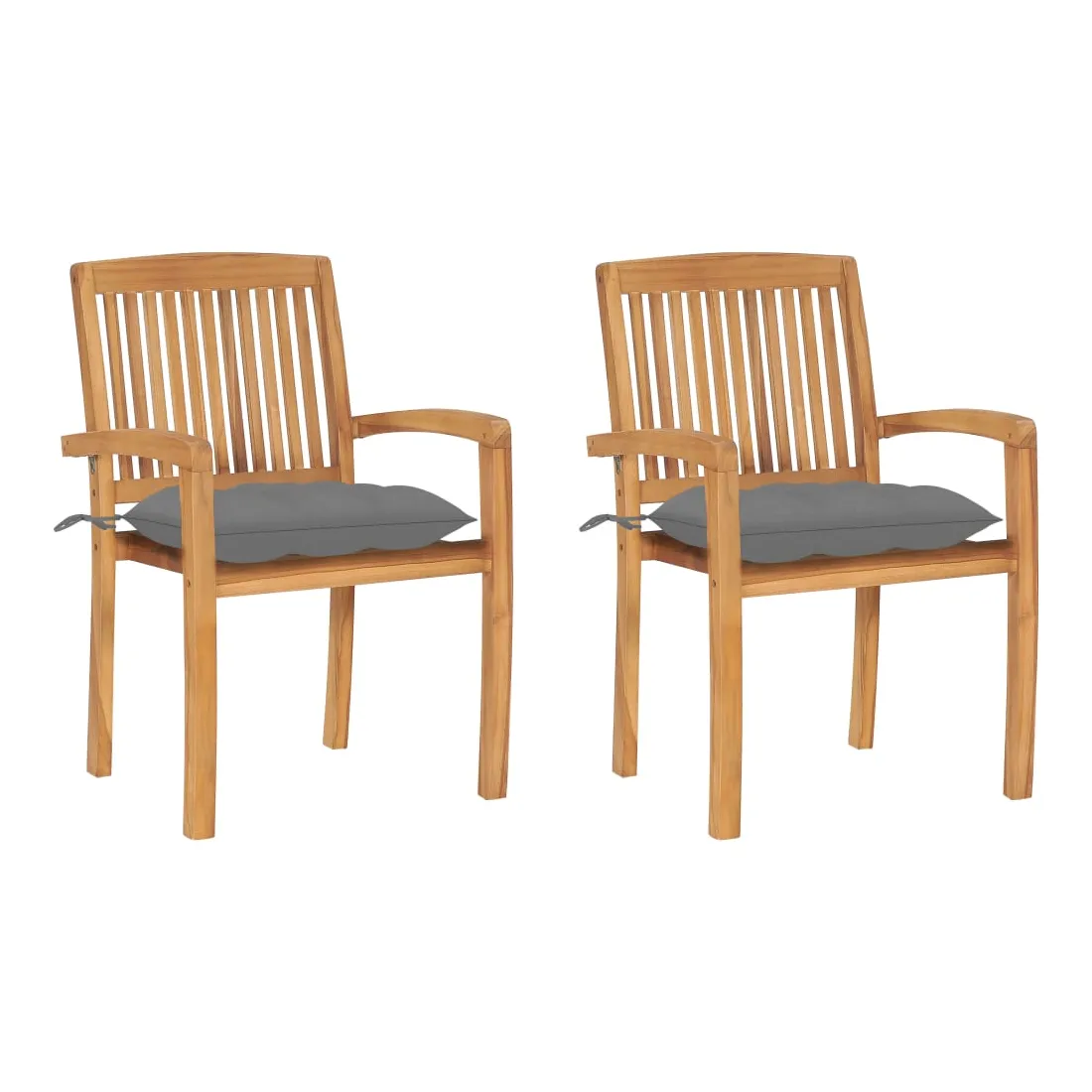 Chaises de jardin lot de 2 et coussins gris Bois de teck massif