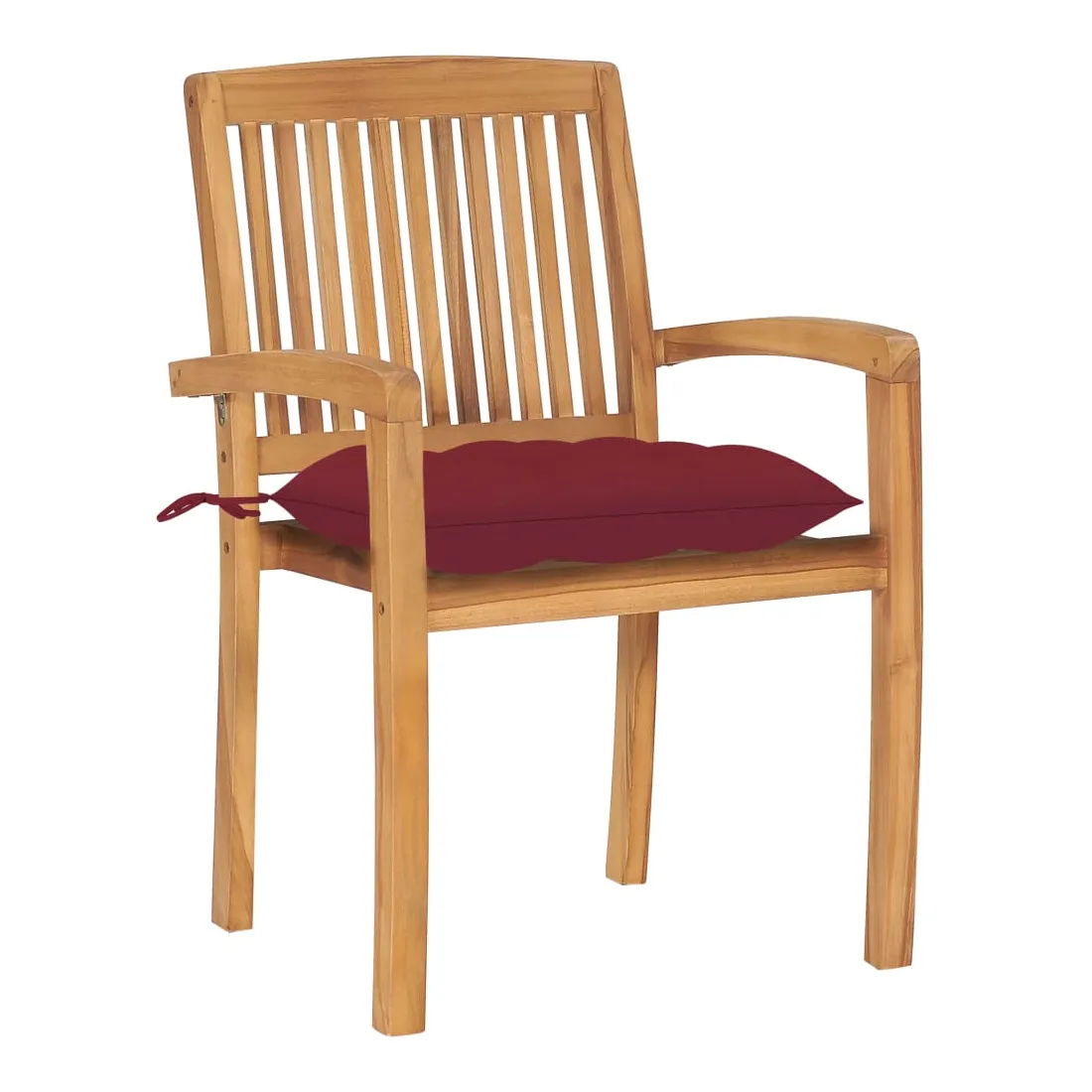 Ces chaises de jardin en bois ajoutent un aspect vintage à votre jardin, patio ou tout autre espace de vie extérieur. Fabriquée en bois dur de teck extrêmement durable, cette pièce de meuble en teck a été chevronnée, séchée au four puis finement poncée pour lui donner un aspect très lisse. Le bois de teck est connu pour sa résistance exceptionnelle aux intempéries, ce qui le rend bien plus adapté aux meubles de jardin que tout autre type de bois. Le bois de teck est le choix idéal si vous souhaitez acheter un meuble de jardin durable. L’ensemble de chaises d’extérieur comprend des dossiers à lattes et des accoudoirs légèrement incurvés, offrant un confort d’assise supplémentaire. Elles sont également empilables pour économiser de l’espace lorsqu'elles ne sont pas utilisées. Les coussins inclus sont pratiques et ont une fonction décorative.