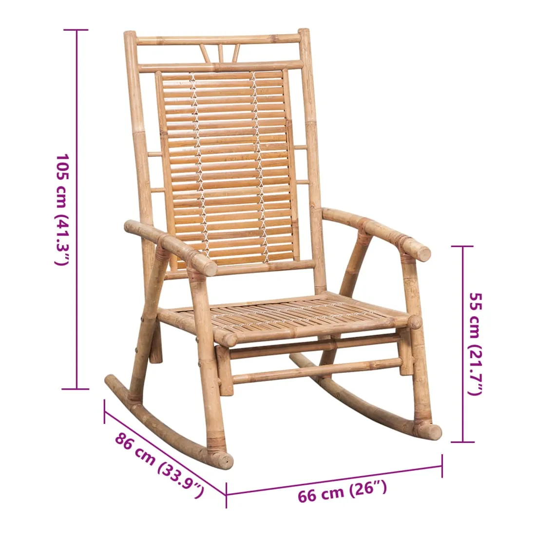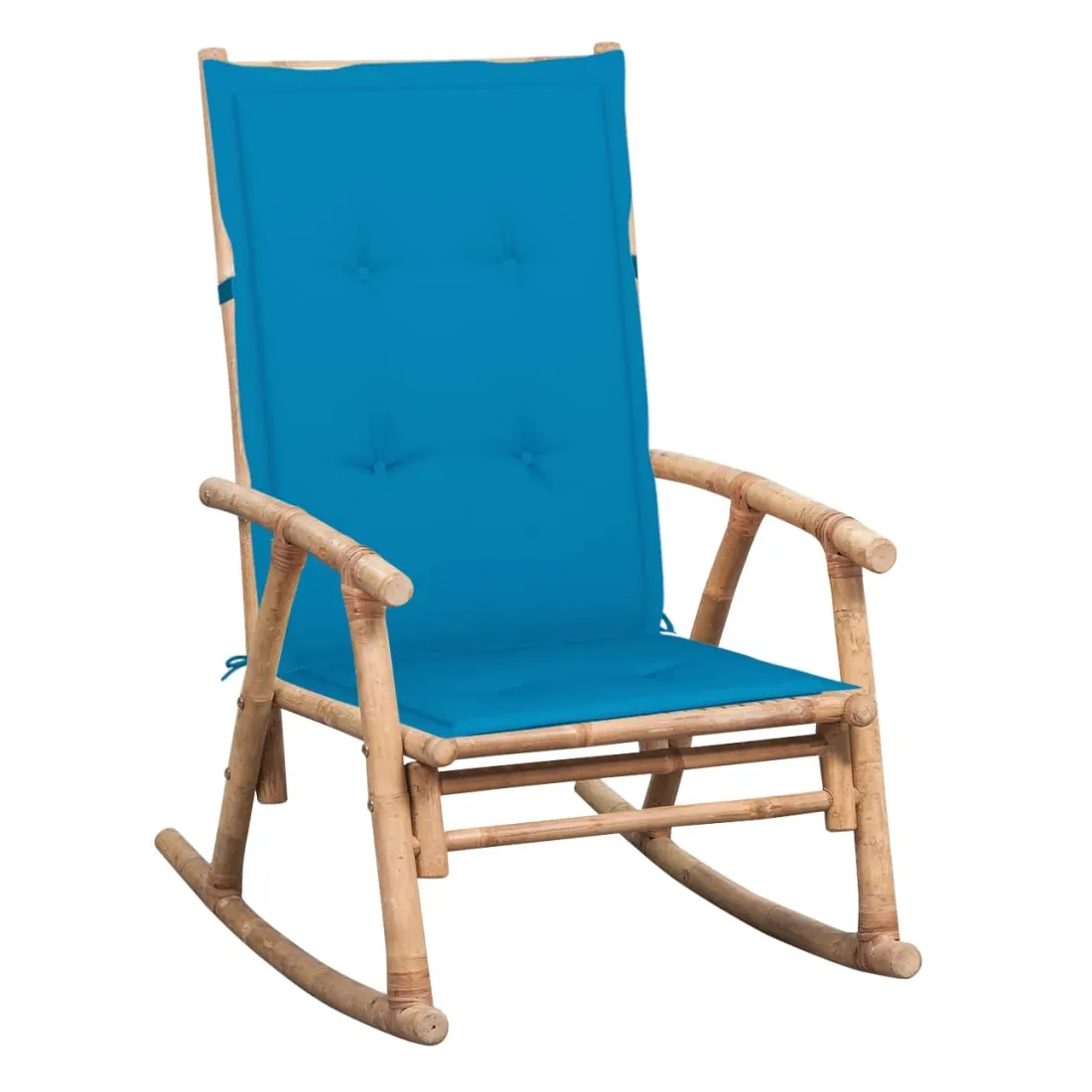 Cette chaise à bascule en bambou est un excellent choix pour vous détendre dans votre jardin ou sur votre véranda. Fabriquée en bambou massif, cette chaise de patio est facile à nettoyer, solide et durable. Résistant aux UV et aux intempéries, le fauteuil en bambou peut être utilisé à l’intérieur comme à l’extérieur. La chaise à bascule sera un excellent supplément à tout espace de vie. De plus, le coussin inclus offre du confort supplémentaire pour vous prélasser. Il est fait de 100 % polyester qui a été traité pour le rendre imperméable. Chaque coussin a une bande élastique et deux ensembles de cordes pour le fixer fermement sur la chaise.