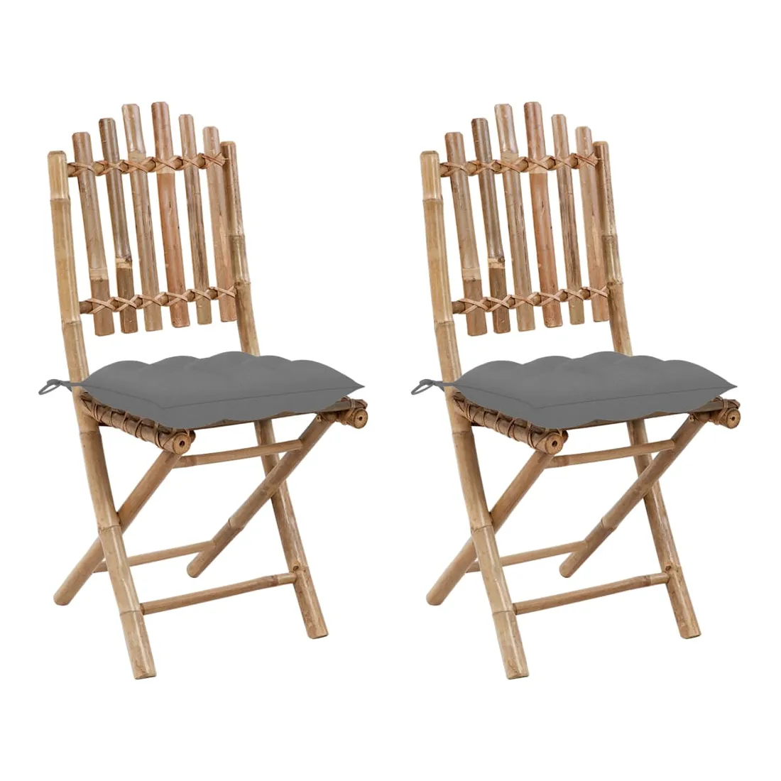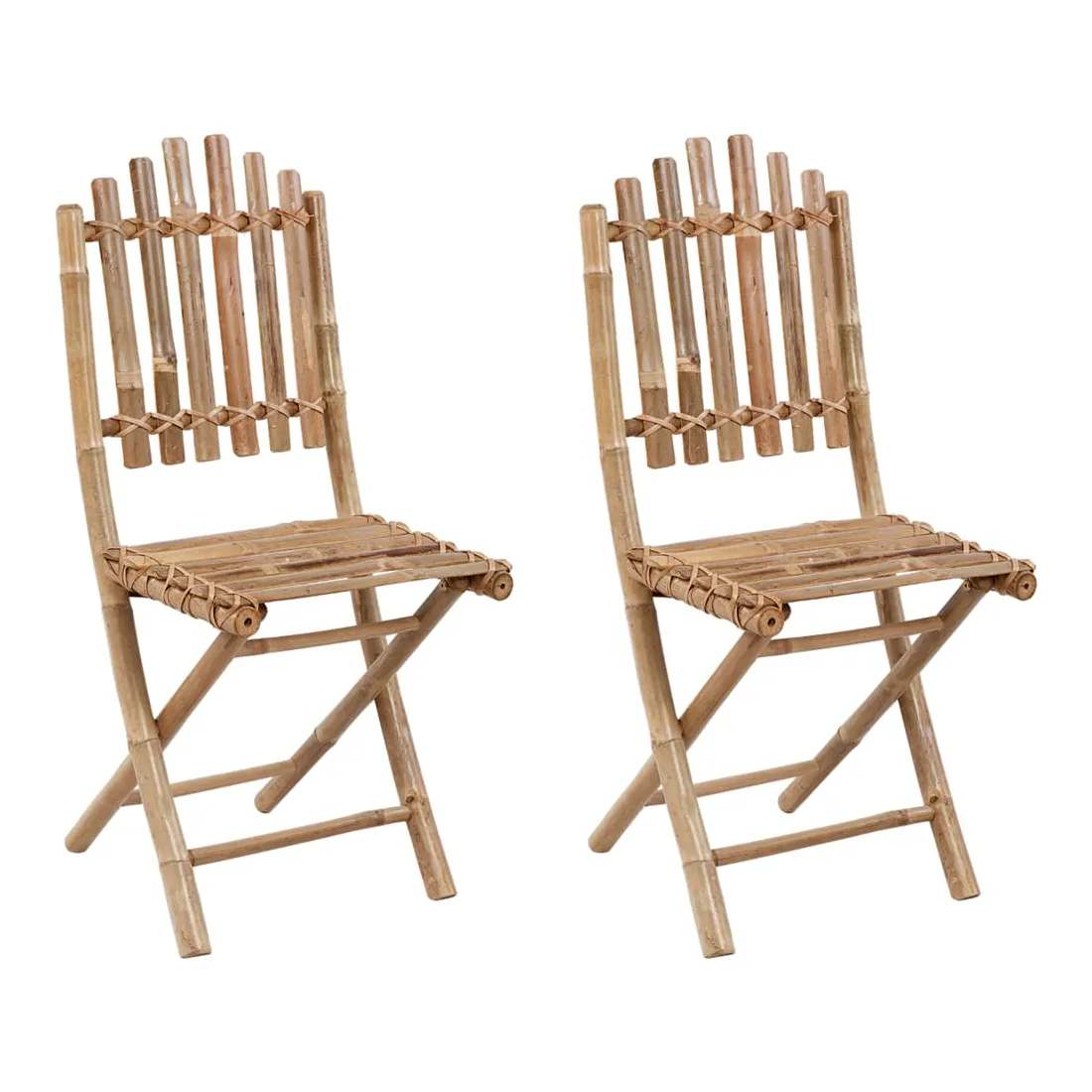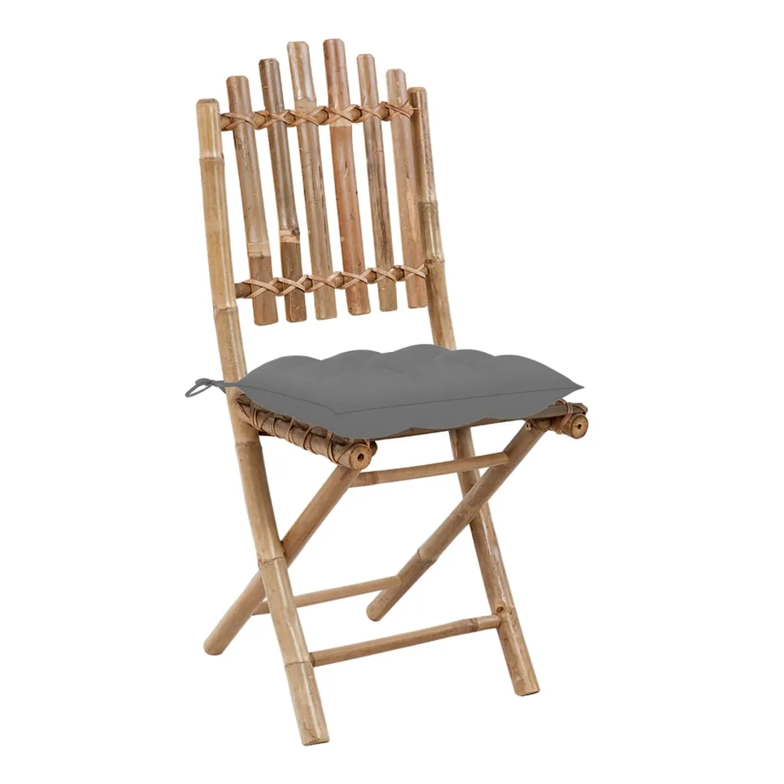 Cet ensemble de 2 chaises de jardin avec coussins sera un excellent choix pour les repas en plein air dans le jardin ou sur la terrasse. Fabriquée en bambou massif, la chaise d'extérieur est résistante et durable. Elle est également résistante aux intempéries et imperméable et facile à nettoyer avec un chiffon humide. La chaise de salle à manger est pliable pour économiser de l'espace de stockage lorsqu'elle n'est pas utilisée. De plus, les coussins fournis offrent du confort supplémentaire lors de la détente. Elle est composée à 100 % de polyester, ce qui la rend résistante et durable pour être adaptée à une utilisation en plein air. Chaque coussin a deux jeux de cordes pour le fixer fermement sur la chaise. Remarque : Afin de prolonger la durée de vie de vos meubles d'extérieur, nous vous recommandons de les nettoyer régulièrement et de ne pas les laisser à l'extérieur sans protection inutilement.Nettoyage : Utiliser une solution savonneuse douceStockage : Si possible, stockez dans un endroit frais et sec à l'intérieur. Si le produit est stocké à l'extérieur, protégez-le avec une housse imperméable. Essuyez et séchez l'excès d'eau ou de neige des surfaces planes après la pluie ou une chute de neige. Permettez une circulation d'air suffisante afin d'éviter les dommages liés à l'humidité.