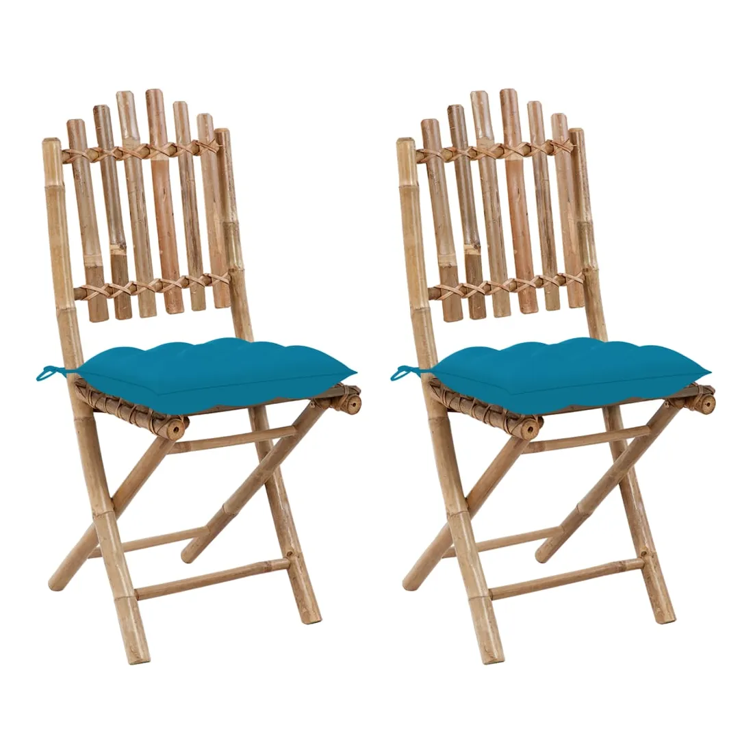 Chaises pliables de jardin lot de 2 avec coussins Bambou