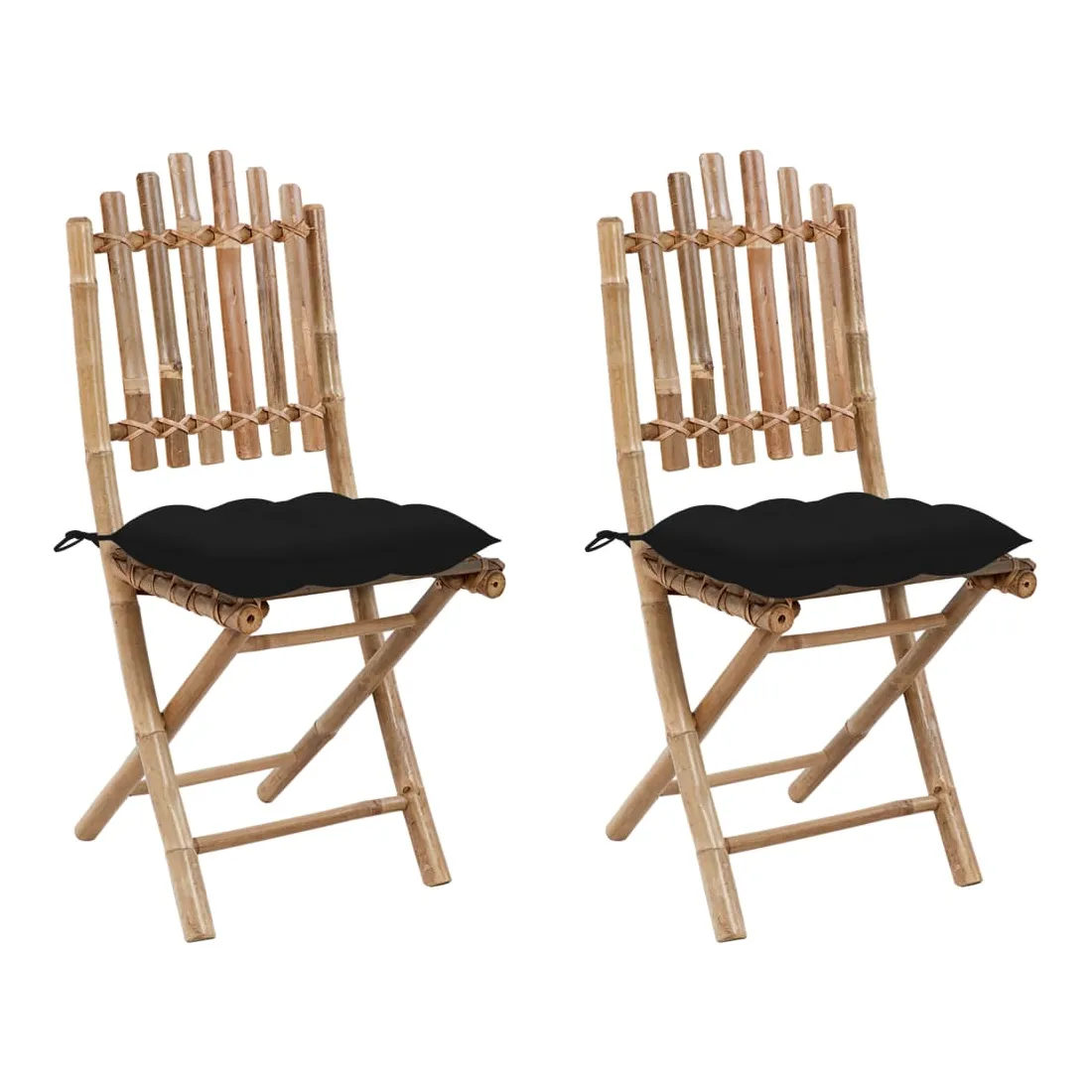 Cet ensemble de 2 chaises de jardin avec coussins sera un excellent choix pour les repas en plein air dans le jardin ou sur la terrasse. Fabriquée en bambou massif, la chaise d'extérieur est résistante et durable. Elle est également résistante aux intempéries et imperméable et facile à nettoyer avec un chiffon humide. La chaise de salle à manger est pliable pour économiser de l'espace de stockage lorsqu'elle n'est pas utilisée. De plus, les coussins fournis offrent du confort supplémentaire lors de la détente. Elle est composée à 100 % de polyester, ce qui la rend résistante et durable pour être adaptée à une utilisation en plein air. Chaque coussin a deux jeux de cordes pour le fixer fermement sur la chaise. Remarque : Afin de prolonger la durée de vie de vos meubles d'extérieur, nous vous recommandons de les nettoyer régulièrement et de ne pas les laisser à l'extérieur sans protection inutilement.Nettoyage : Utiliser une solution savonneuse douceStockage : Si possible, stockez dans un endroit frais et sec à l'intérieur. Si le produit est stocké à l'extérieur, protégez-le avec une housse imperméable. Essuyez et séchez l'excès d'eau ou de neige des surfaces planes après la pluie ou une chute de neige. Permettez une circulation d'air suffisante afin d'éviter les dommages liés à l'humidité.