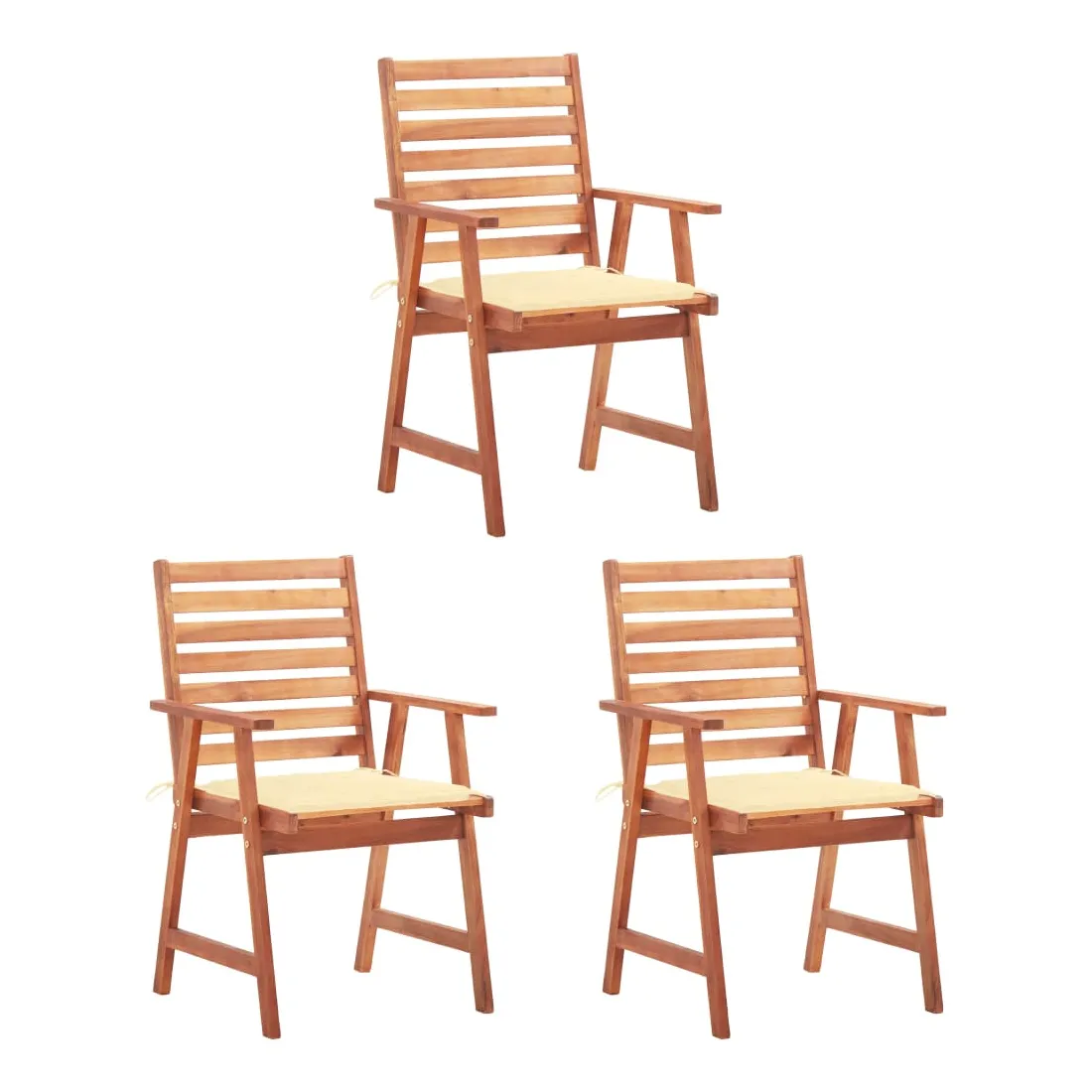 Chaises à manger d'extérieur lot de 3 et coussins Acacia massif