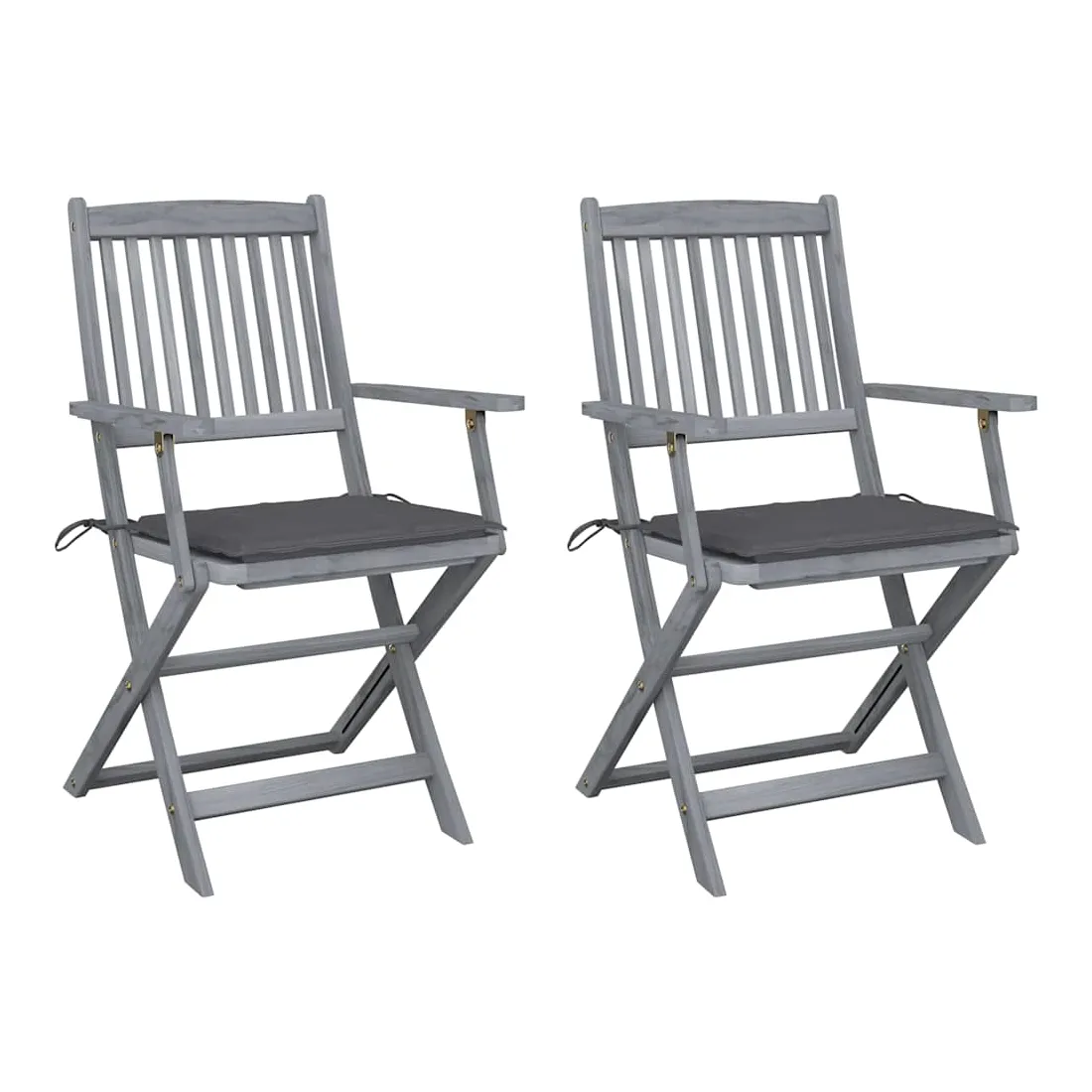 Chaises pliables d'extérieur lot de 2 et coussins Bois d'acacia