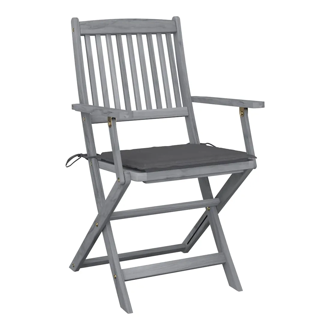 Cet ensemble de chaises de salle à manger en bois contemporain avec coussins ajoute une touche de style naturel à votre jardin, terrasse ou patio. Cet ensemble de chaises pliables est un excellent choix pour les repas. Ces chaises de salle à manger sont faites de bois d’acacia massif, un bois dur tropical, les rendant résistantes aux intempéries et durables pour des années d’utilisation. Le bois d’acacia massif a la force de soutenir le poids et de résister à l’usure du temps. La surface grise délavée est facile à nettoyer avec un chiffon humide. Les chaises peuvent être repliées pour économiser de l’espace lorsqu'elles ne sont pas utilisées. De plus, les coussins inclus offrent un confort supplémentaire lors des moments de détente ou des repas. Chaque coussin comporte deux ensembles d
